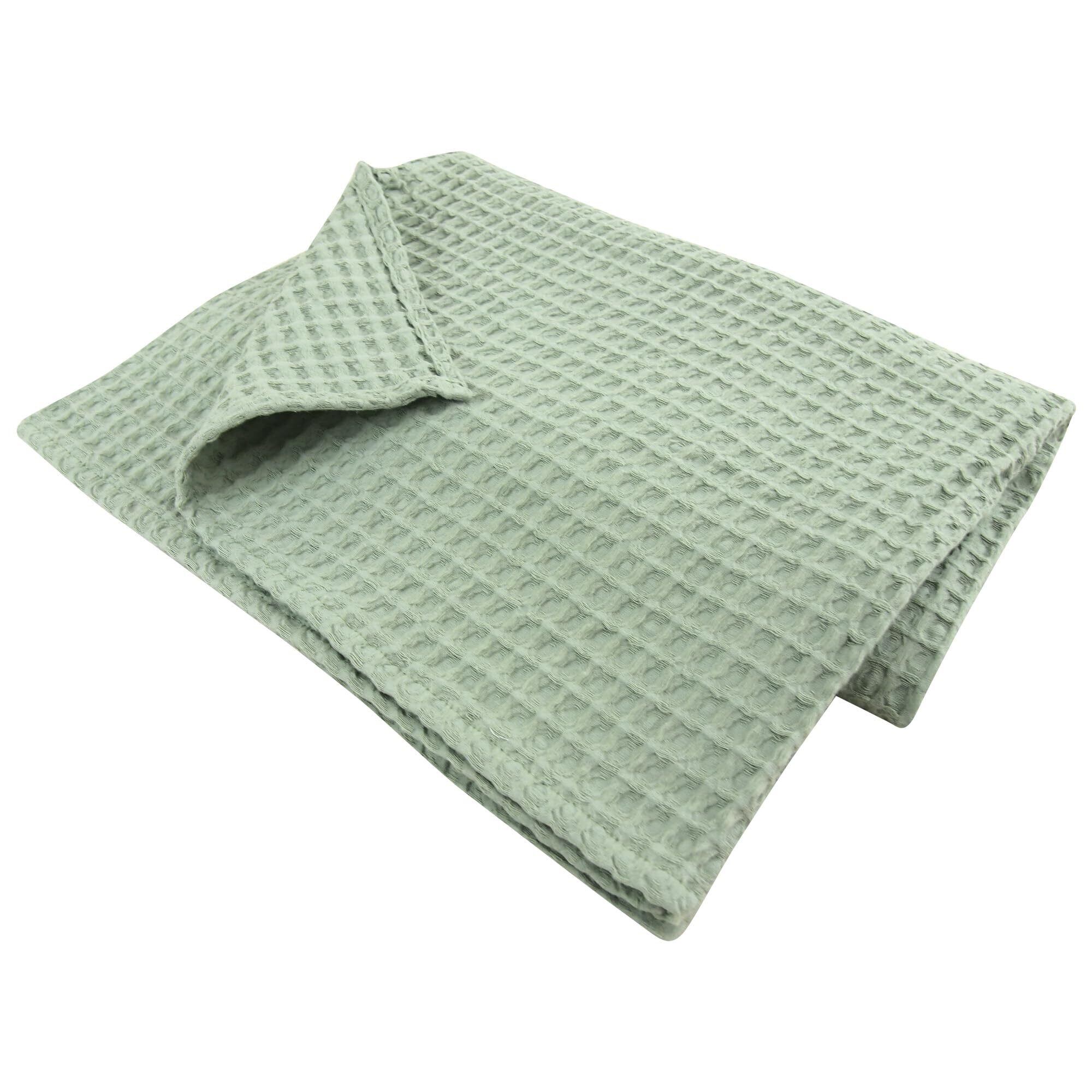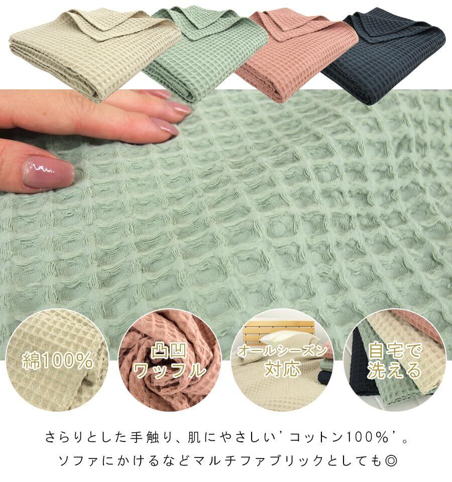 リヴェール タオルケット ワッフルケット ハーフサイズ ハーフケット ブランケット 綿100% コットン おしゃれ 肌掛け 毛布 おしゃれ オールシーズン 夏用 丸洗いOK (グリーン)