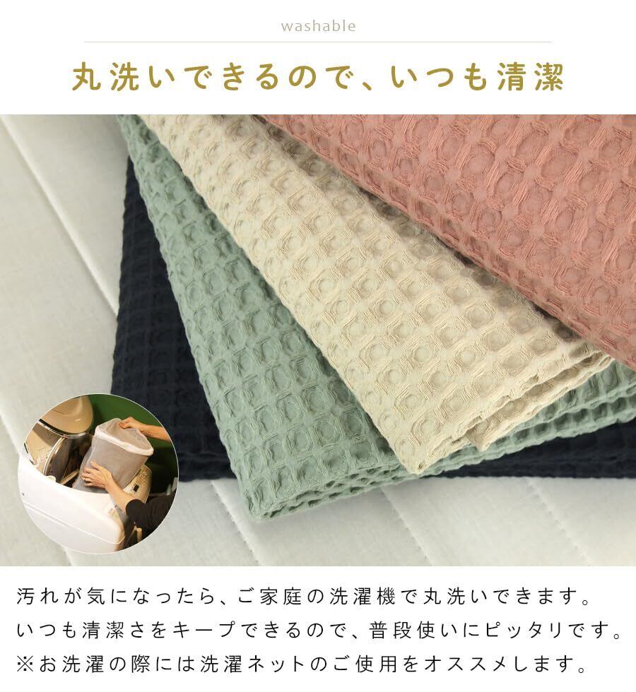オールシーズン対応-春から初秋はもちろん、暑い季節の冷房対策・ジメジメ/ムシムシ対策に。寒い季節は掛け布団をプラスすれば1年中対応。ご自宅で丸洗いでき、いつも清潔。
