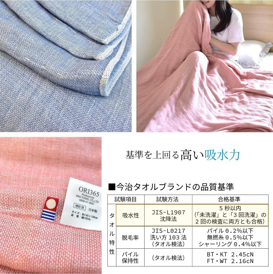 【今治タオル ハーフケット】 ORI 風が通り抜けるガーゼケット(6重) ■素材:綿100% ■サイズ:140×100cm ■生産地:日本 今治市 ■認定番号:2023-982号