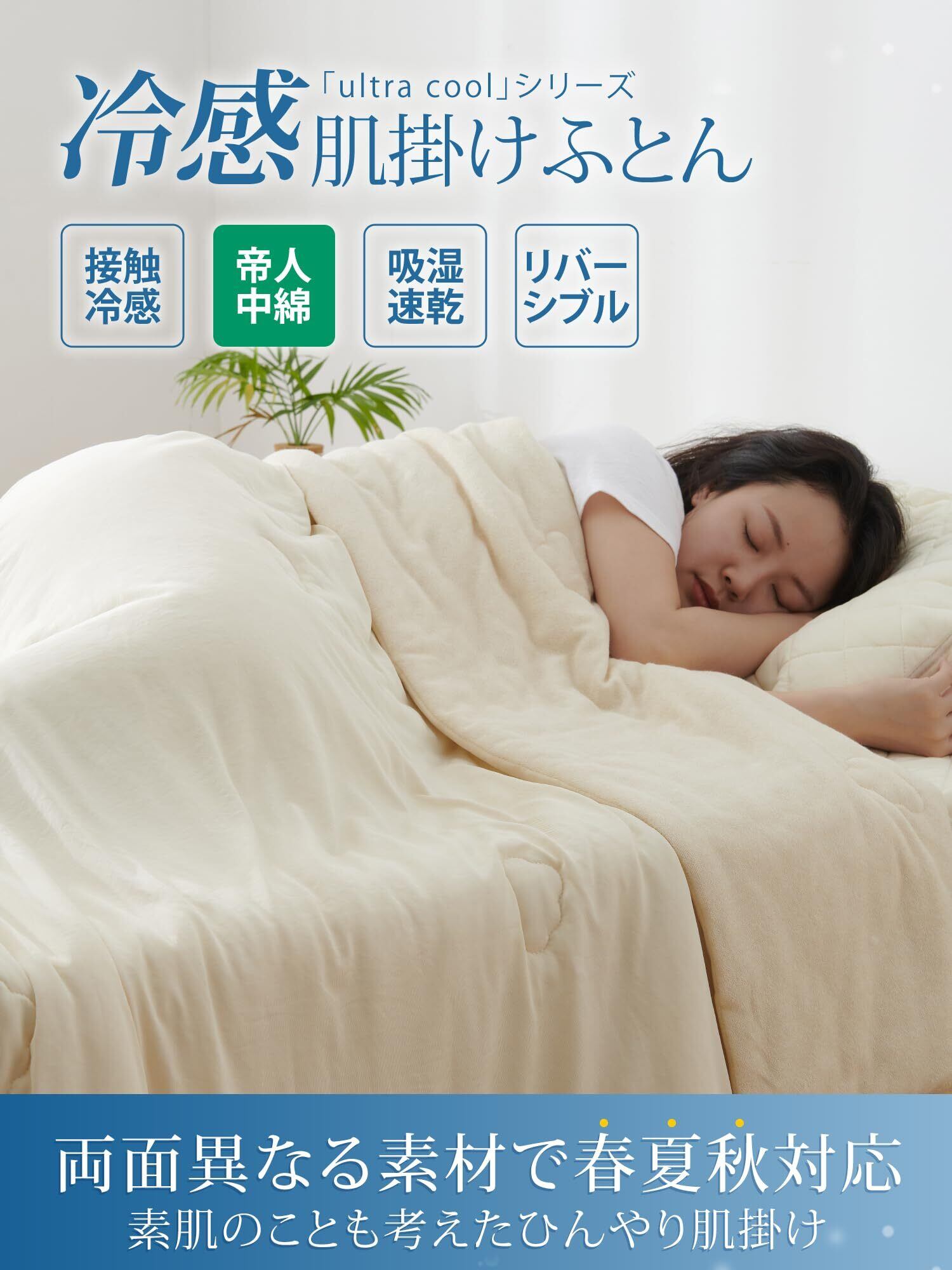 【在庫セール】クモリ(Kumori) 夏用掛け布団 ダブル 肌掛け布団 冷感&タオル地 【リバーシブル・帝人TEIJIN中わた】 掛ふとん キルトケット ひんやり 夏布団 軽量 洗える 冷房対策 夏ふとん 接触冷感 吸湿速乾 洗える かけ布団 180×200cm サンドベージュ