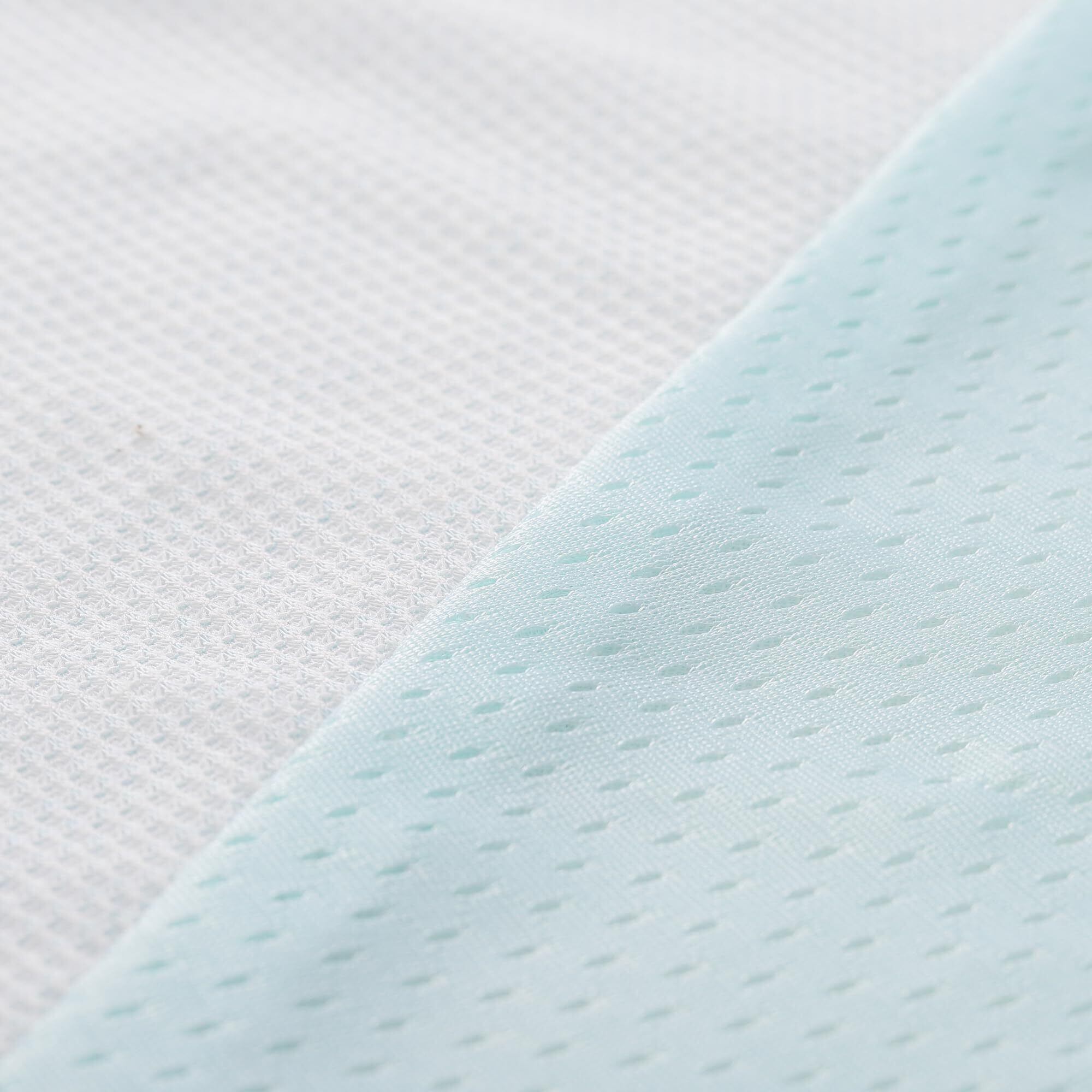 表裏で違った肌触りを楽しめるリバーシブルタイプ。淡色面は凸凹触感のニットワッフル生地を使用し、濃色面は肌にベタつかない特殊生地を使用。お好みやその日の温度・湿度に合わせてお使いいただけます。