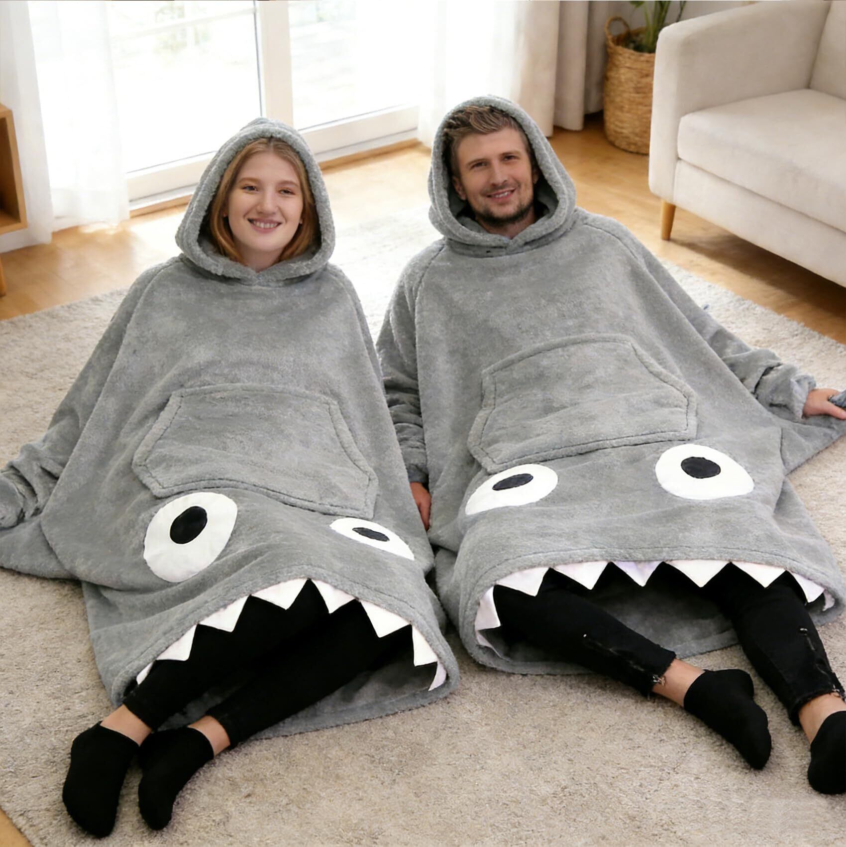 【数量限定】[HEWEAYTA] 着る毛布 ルームウェア レディース 冬 - 着るブランケット 厚手 フード付き 長袖 ロング丈 ポケット付き もこもこ サメ 男女兼用 暖かい
