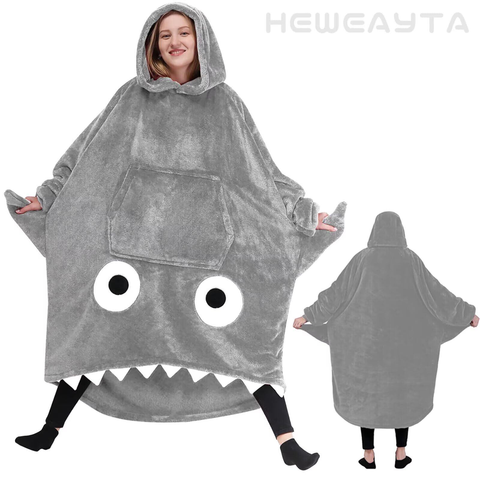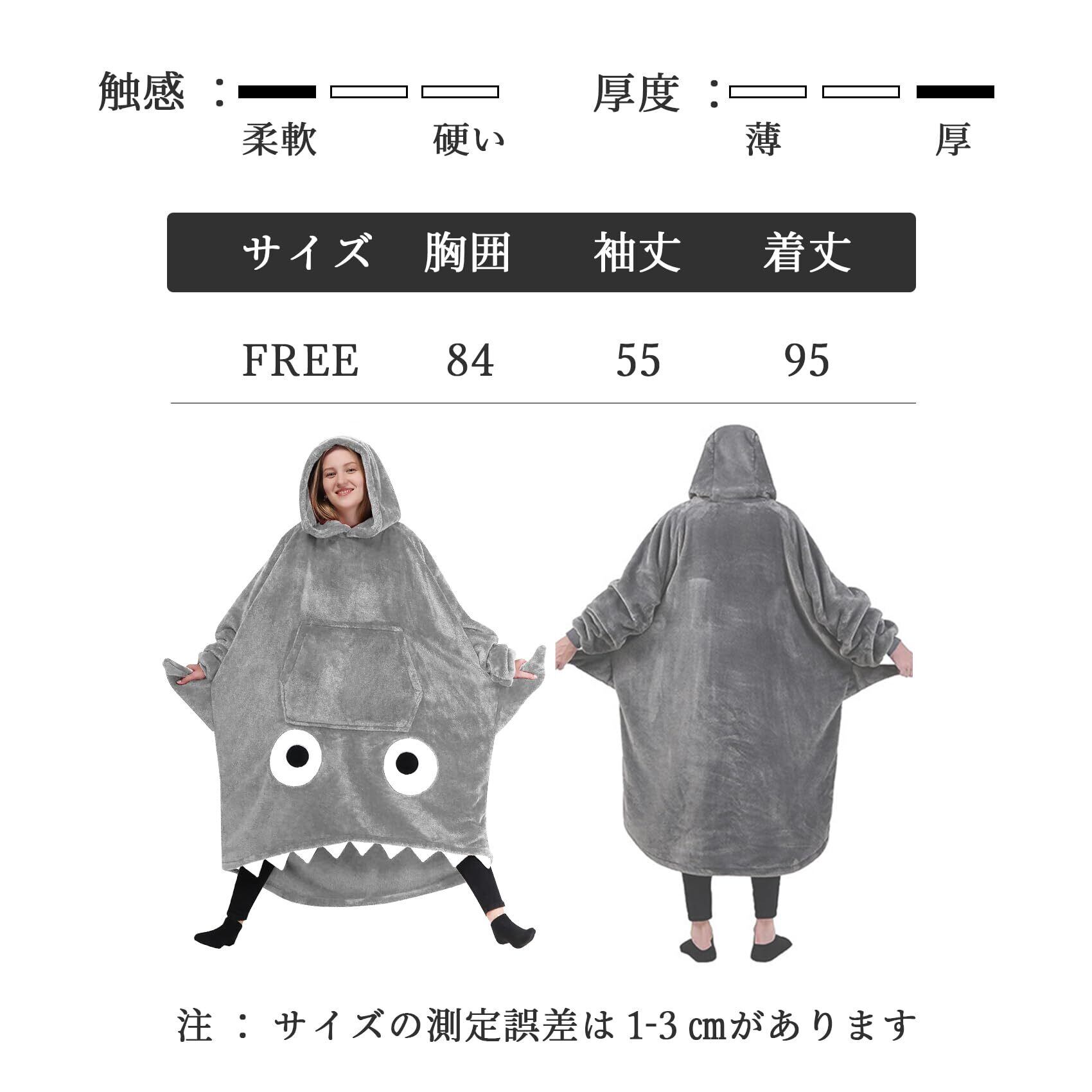 [HEWEAYTA] 着る毛布 ルームウェア レディース 冬 - 着るブランケット 厚手 フード付き 長袖 ロング丈 ポケット付き もこもこ サメ 男女兼用 暖かい