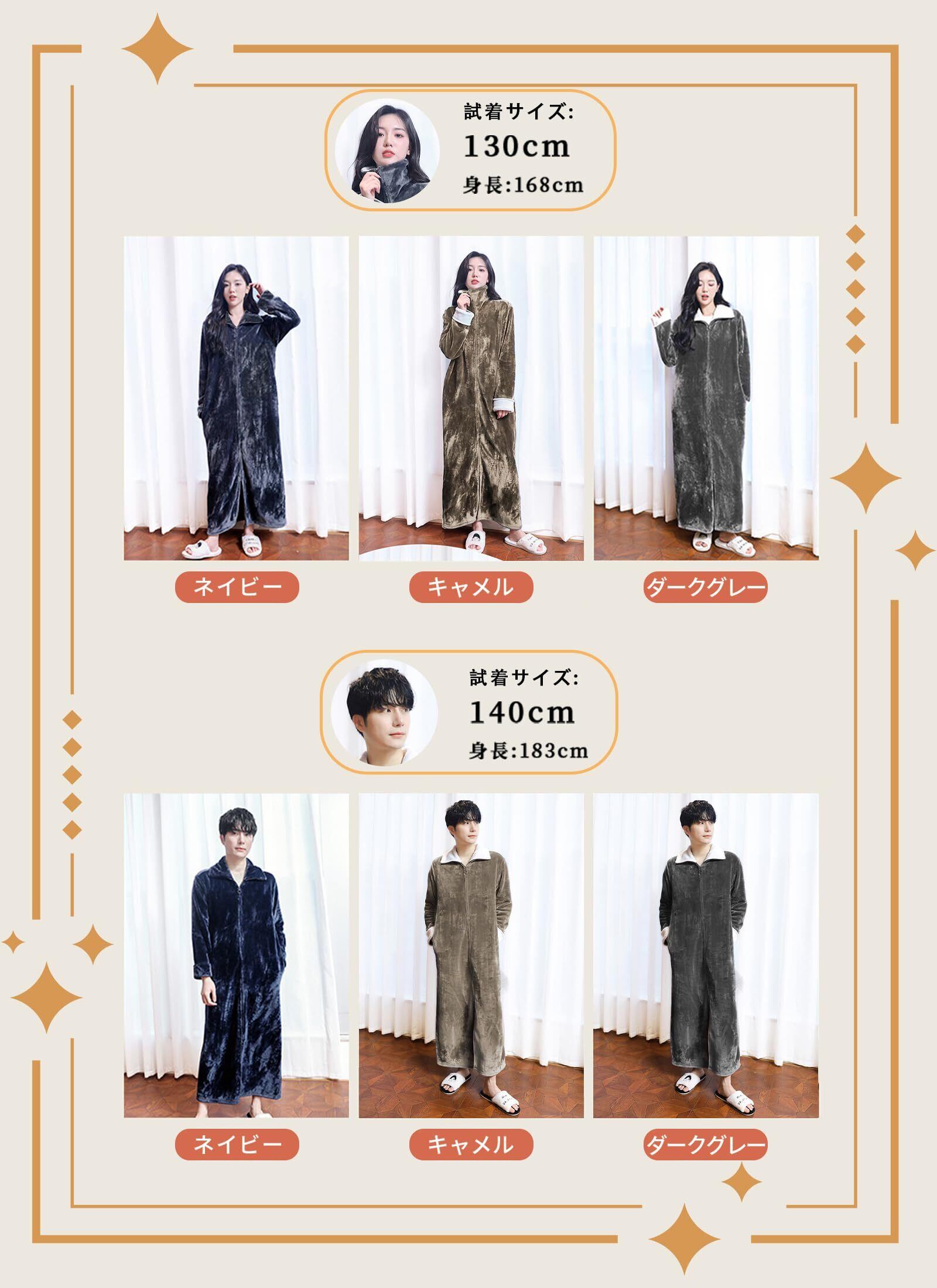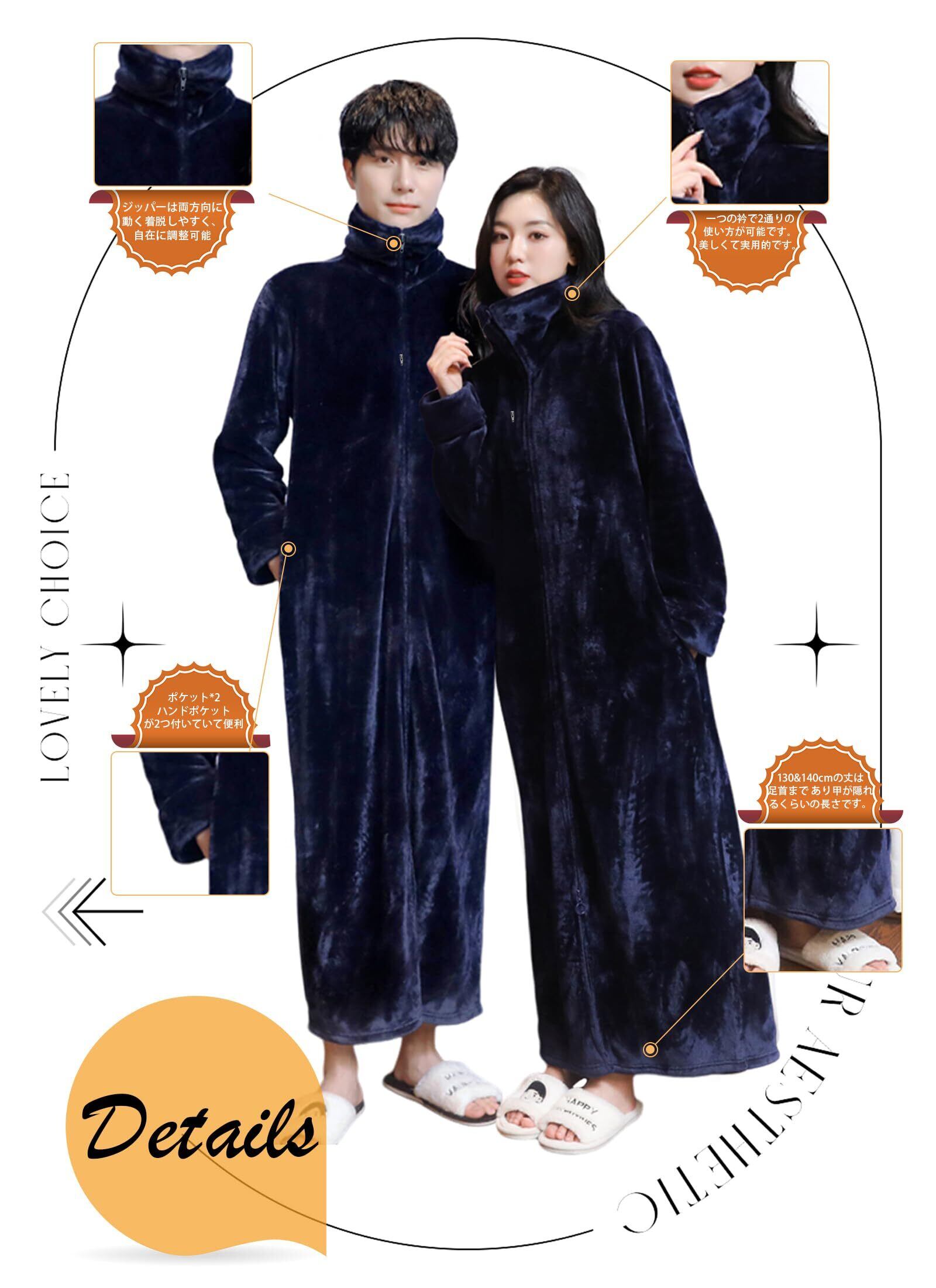[DAYCLOTH] 2024ロング 着る毛布 メンズ レディース 着丈130/140cm 足まで ルームウェア 部屋着 双方向ジッパー ポケット付 体型カバー 大きいサイズ 襟が立てられる 男女兼用 無地 秋 冬服 室内服 ネイビー ダークグレー