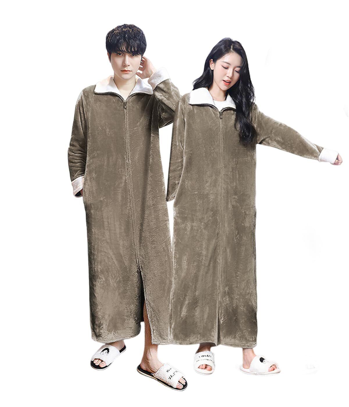 【在庫セール】[DAYCLOTH] 2024ロング 着る毛布 メンズ レディース 着丈130/140cm 足まで ルームウェア 部屋着 双方向ジッパー ポケット付 体型カバー 大きいサイズ 襟が立てられる 男女兼用 無地 秋 冬服 室内服 ネイビー ダークグレー