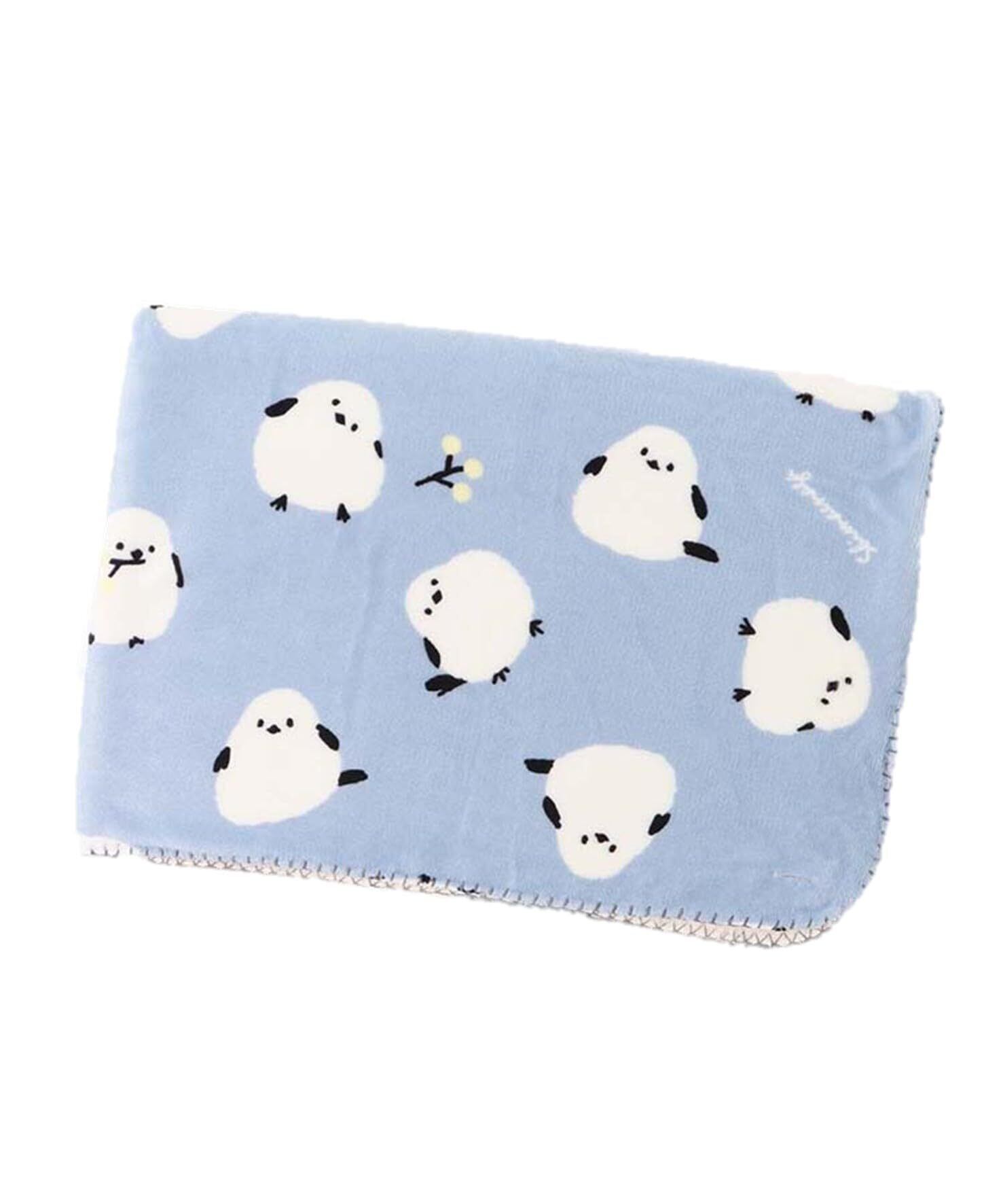 スワンネル ボア ふわふわ 柔らか あったか 3way ひざ掛け ブランケット ポンチョ 肩掛け ボタン付き 秋冬用 防寒対策 家 オフィス アウトドア 出張 旅行 100×70cm アニマル 動物 鳥 とり トリ (シマエナガ ブルー)