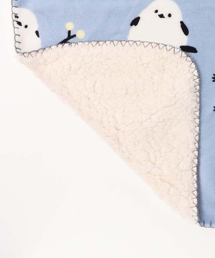 【在庫処分】スワンネル ボア ふわふわ 柔らか あったか 3way ひざ掛け ブランケット ポンチョ 肩掛け ボタン付き 秋冬用 防寒対策 家 オフィス アウトドア 出張 旅行 100×70cm アニマル 動物 鳥 とり トリ (シマエナガ ブルー)