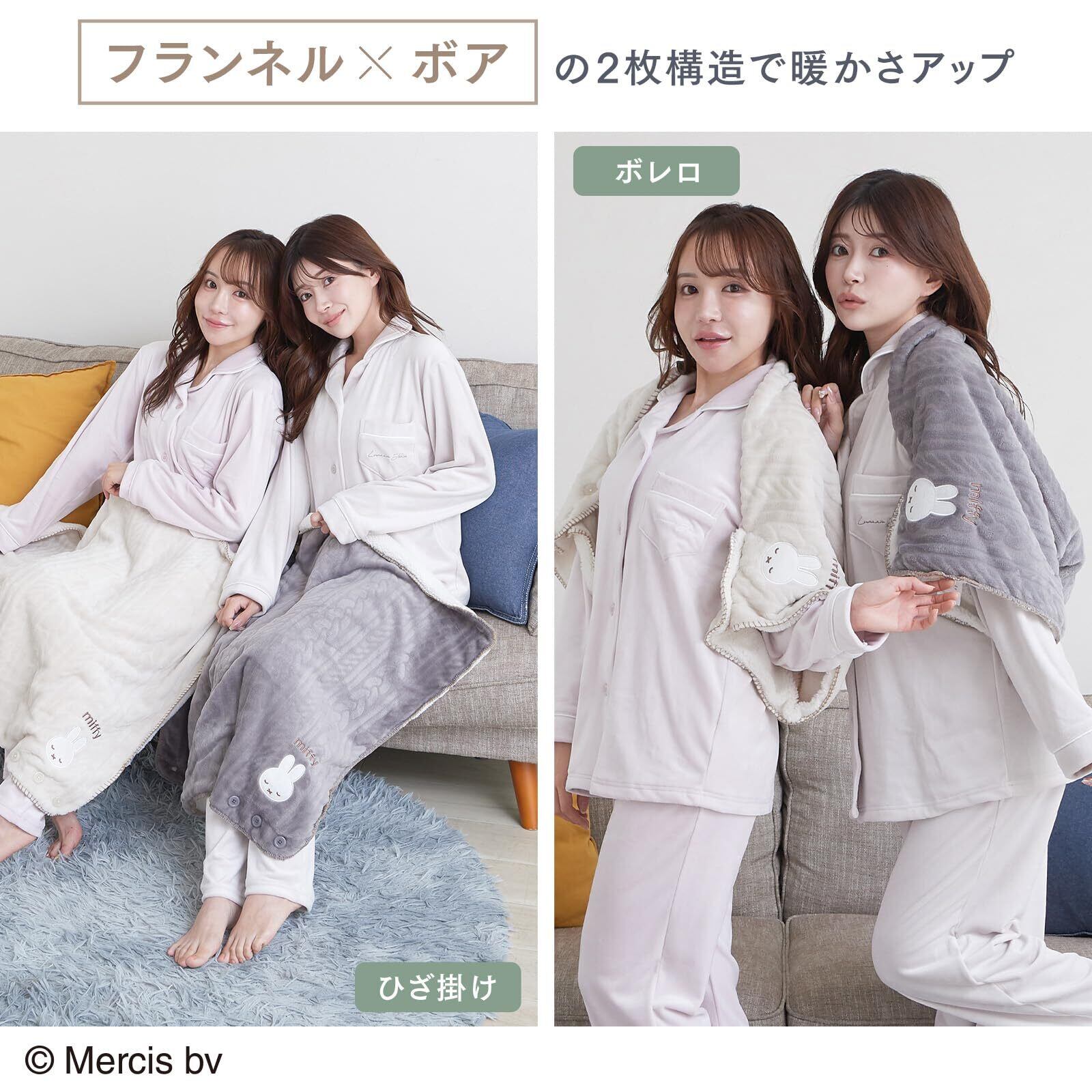 【特価セール】[Luanna Jena] ミッフィー ブランケット 4way ひざ掛け 【ふわふわ裏ボアでぬくぬく冬時間】 フランネル 裏ボア 巻きスカート ポンチョ ボレロ 洗える 軽量 70×100cm (縄柄チャコールグレー)
