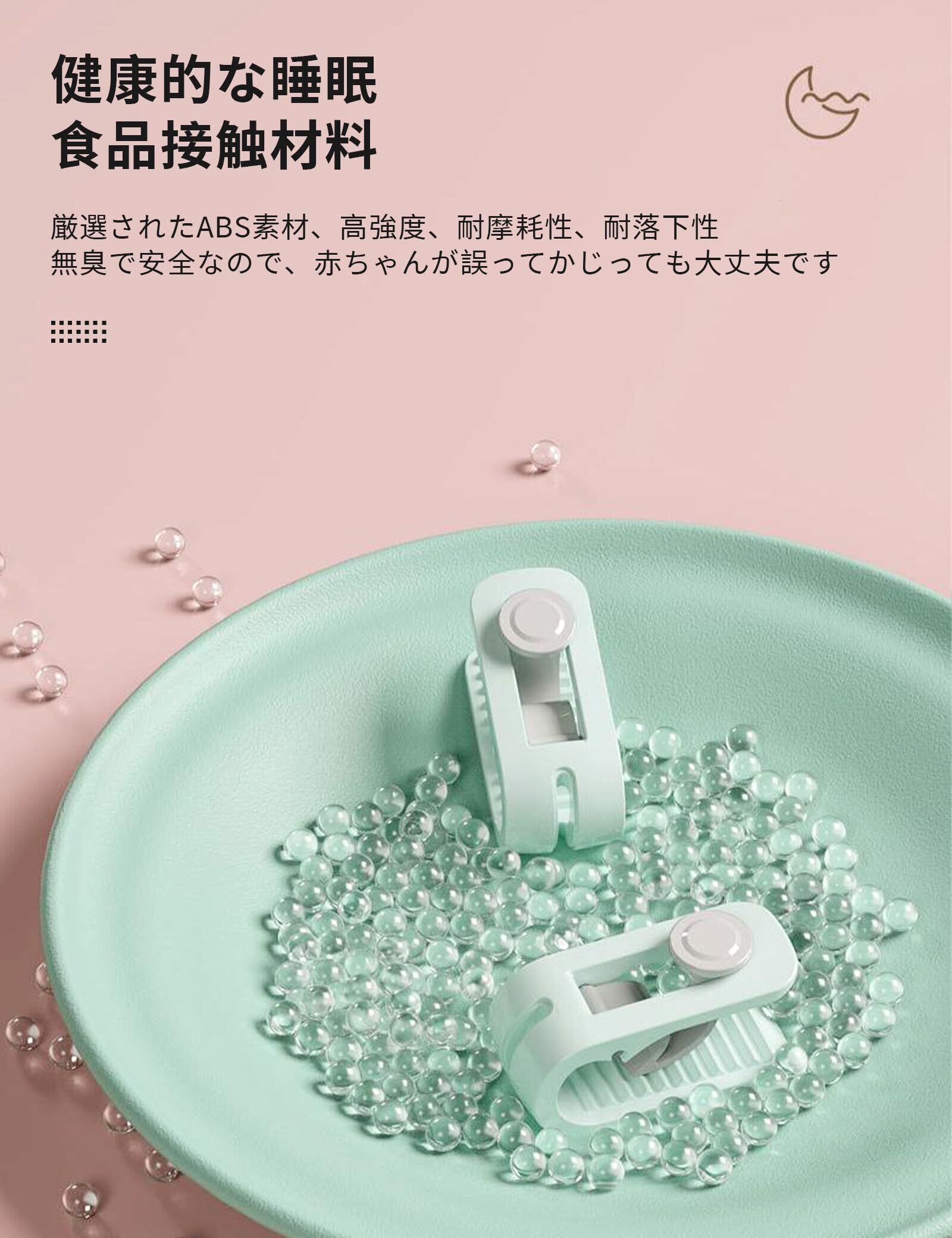【上質な素材】耐衝撃性に優れたABS樹脂素材を採用し、食品接触材料に属し、高強度、耐摩耗性、耐落下性、安全、無臭。 補強で厚くなり、耐用年数が長くなります。 【動きの防止】掛け布団が反対側に流れる心配がなく、掛け布団クリップは掛け布団を固定でき、滑り止めのストライプデザインは寝ている間に動くのを防ぎます。 一方、フィクサーには針がなく、潜在的に危険ではありません、子供たちは安全にそれを使用することができます。 【製品サイズ】長さ:5.2cm、幅:2cm、高さ:2.6cm、重さ:約10g、材質:ABS、2色:ピンク、グリーン。 【使用方法】 ①キャッチを開き、掛け布団を押し込みます。スナップを押してしっかりロックします。しっかり引っ張ると固定されます。 カラビナを開くと簡単にロックが外れます。 【幅の広い】ファッショナブルで実用的で、軽量で美しい、あなたの家の素晴らしい装飾です。固定されたデバイスは、キルトを固定するためだけでなく、カーテンを固定してカーテンベルトで役割を果たすためにも使用できます。