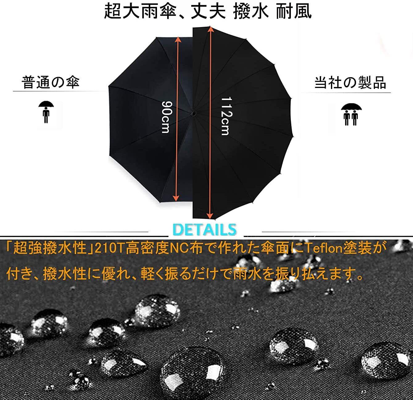 傘 メンズ 長傘 軽量 紳士傘 16本骨 大きい 耐風 撥水 悪天候に強い 高強度グラスファイバー 大きい ゴルフ 自動開け 収納ポーチ付き(