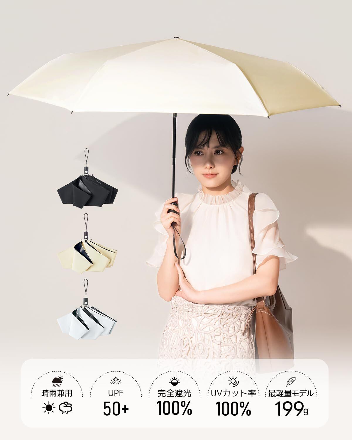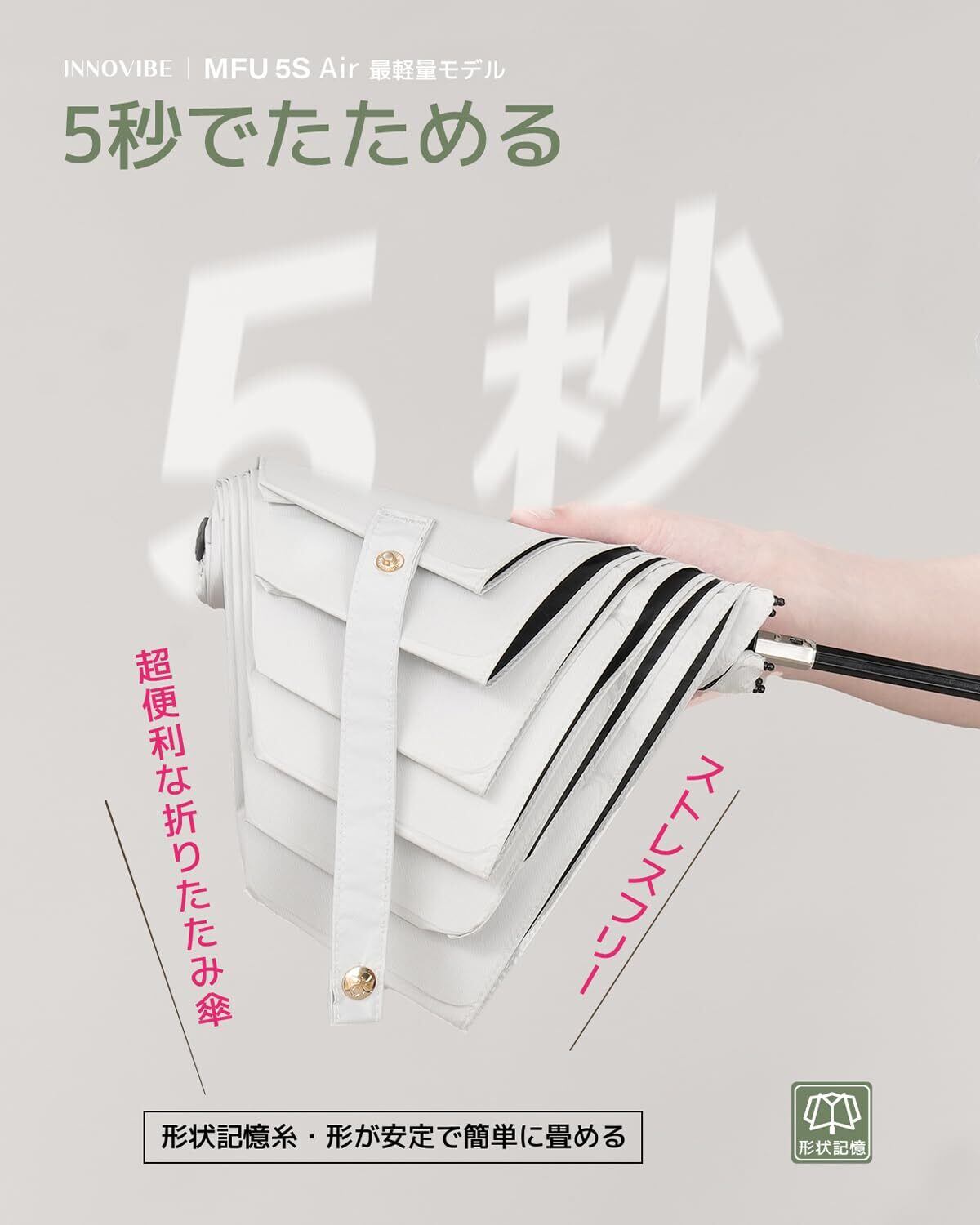 Konciwa 【MFU5S AIR】日傘 形状記憶 5秒でたためる傘 軽量 199g UVカット率 100% 晴雨兼用 逆戻り防止構造 自動開閉 完全遮光 遮熱 折りたたみ傘 コンパクト設計 おしゃれ 撥水速乾 高耐久 耐強風 携帯便利