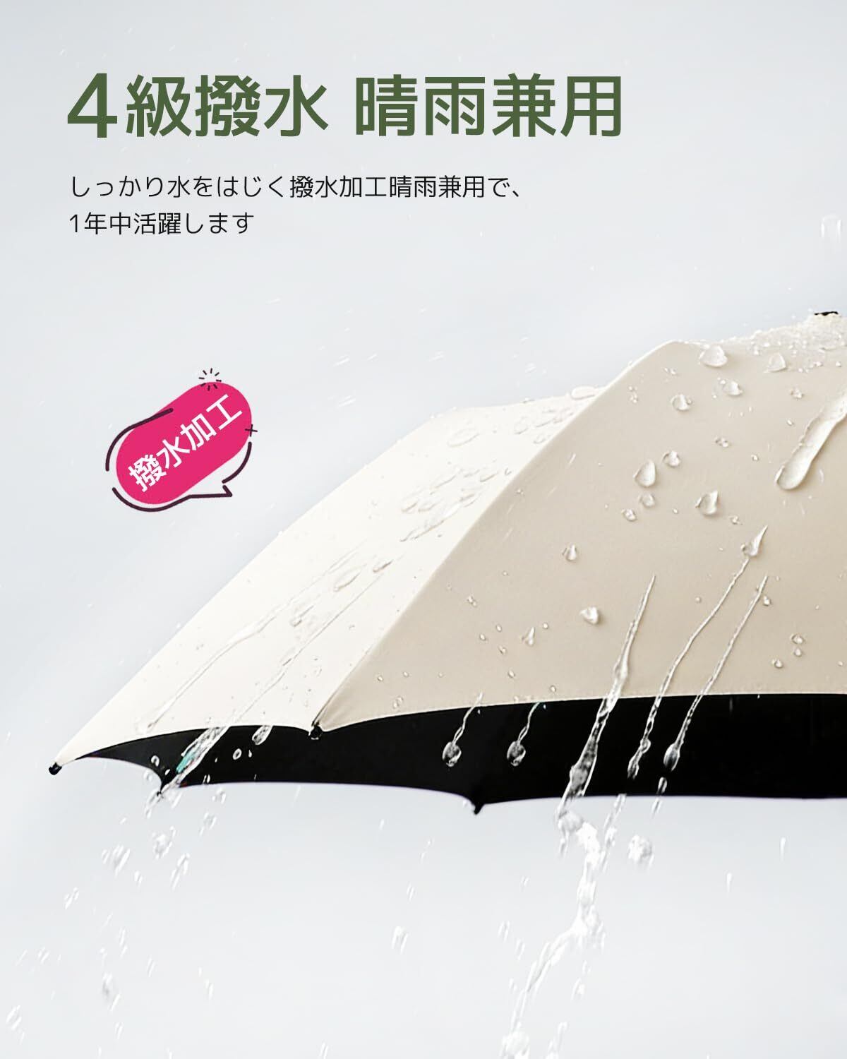 【晴雨兼用設計】: 晴れの日の日傘としても、雨の日の雨傘としても使える便利な2WAY仕様。撥水速乾加工により、雨水を素早く弾き、乾きも早いので毎日の使用に適しています。
