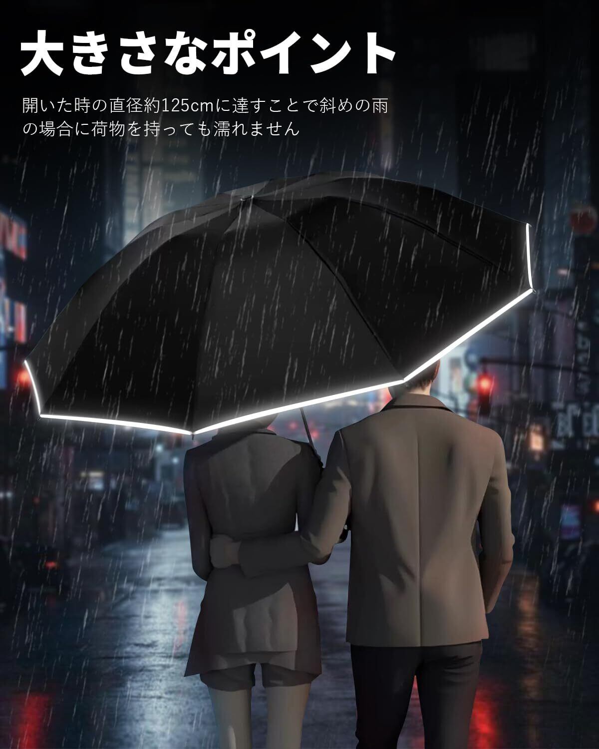 【超大サイズ・強化型10本骨・逆折り式】 折りたたみ傘 10本骨 ワンタッチ 自動開閉 折り畳み傘 メンズ傘 大きいサイズ 晴雨兼用 超撥水 【高密度310T生地】 耐風 反射テープ テフロン加工 遮光遮熱 UVカット 丈夫 豪雨/梅雨/台風対応 軽量 男女兼用