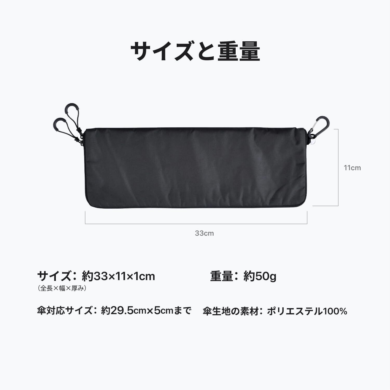 最大傘対応サイズ:全長約29.5cm、傘幅約5cm