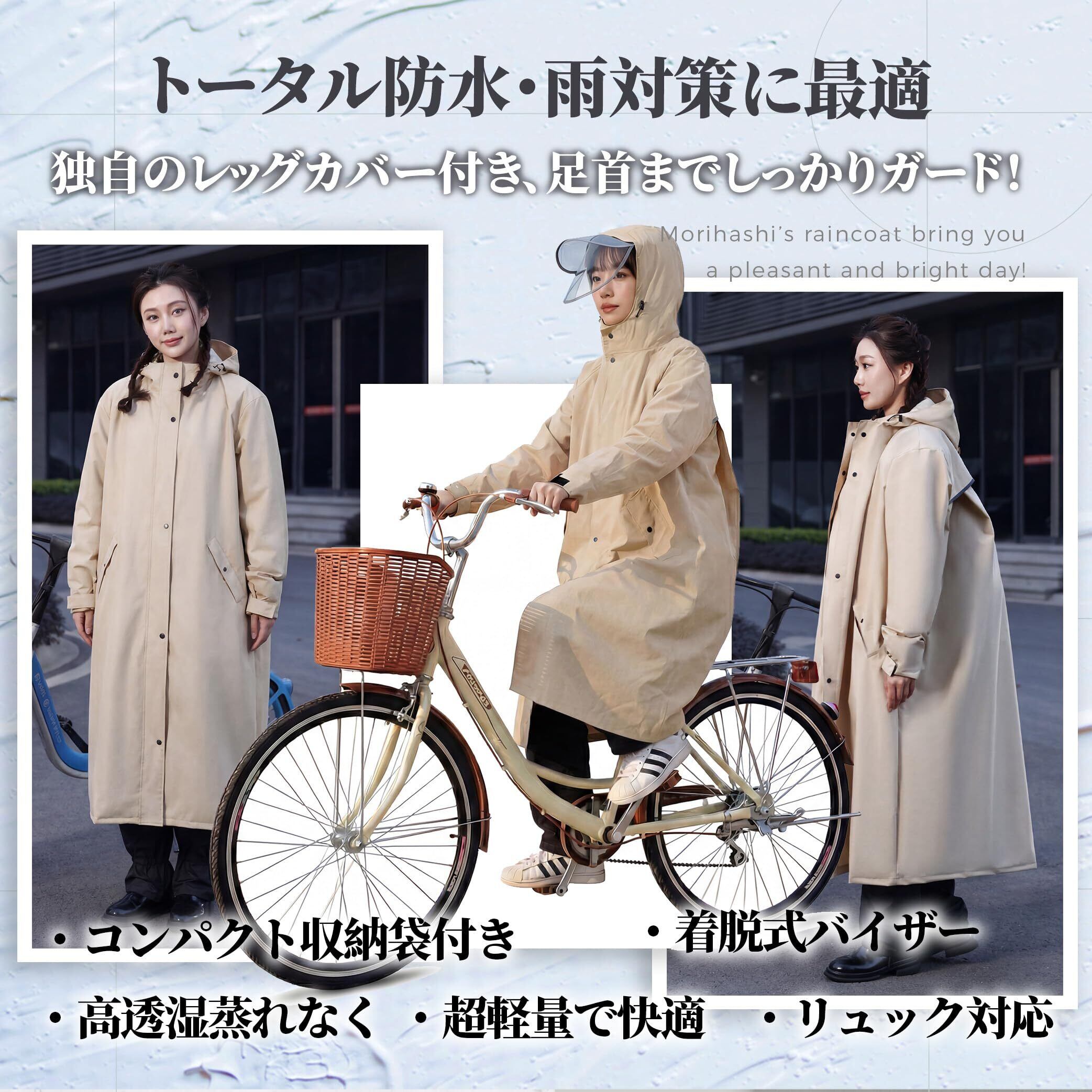 【新春セール】[モリヲハシル] レインコート レディース メンズ 【レッグカバー付き・足も濡れない】 雨具 上下 ポンチョ レインウェア カッパ 自転車 リュック対応 梅雨対策 軽量 通気 通勤 通学 防水 撥水加工 男女兼用 コンパクト 収納袋付き