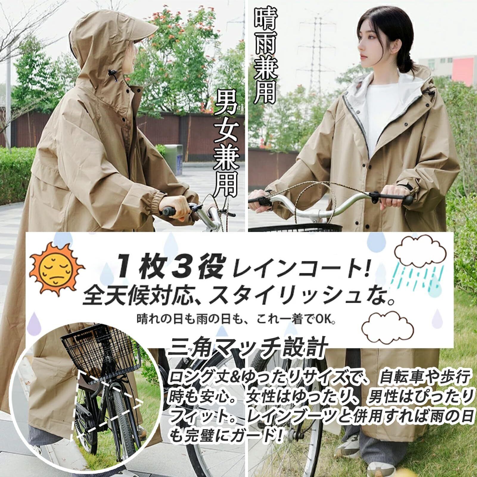 【男女兼用のファッションレインコート&ゆったりサイズ】環境に優しい新型防水素材作られのレインコート、無味無臭で、着心地が良い!通気性が抜群ので、真夏でも安心使用。軽量材質のため、リュック対応 雨の日の自転車で、機能もおしゃれも妥協したくない人のための、高い機能性とデザイン性を両立させたレインコートです。厚手ながら丈夫で、柔らかくて破れにい、防水性もバッチリ。それに高抗汚れなので、大雨でも心配もいらない。