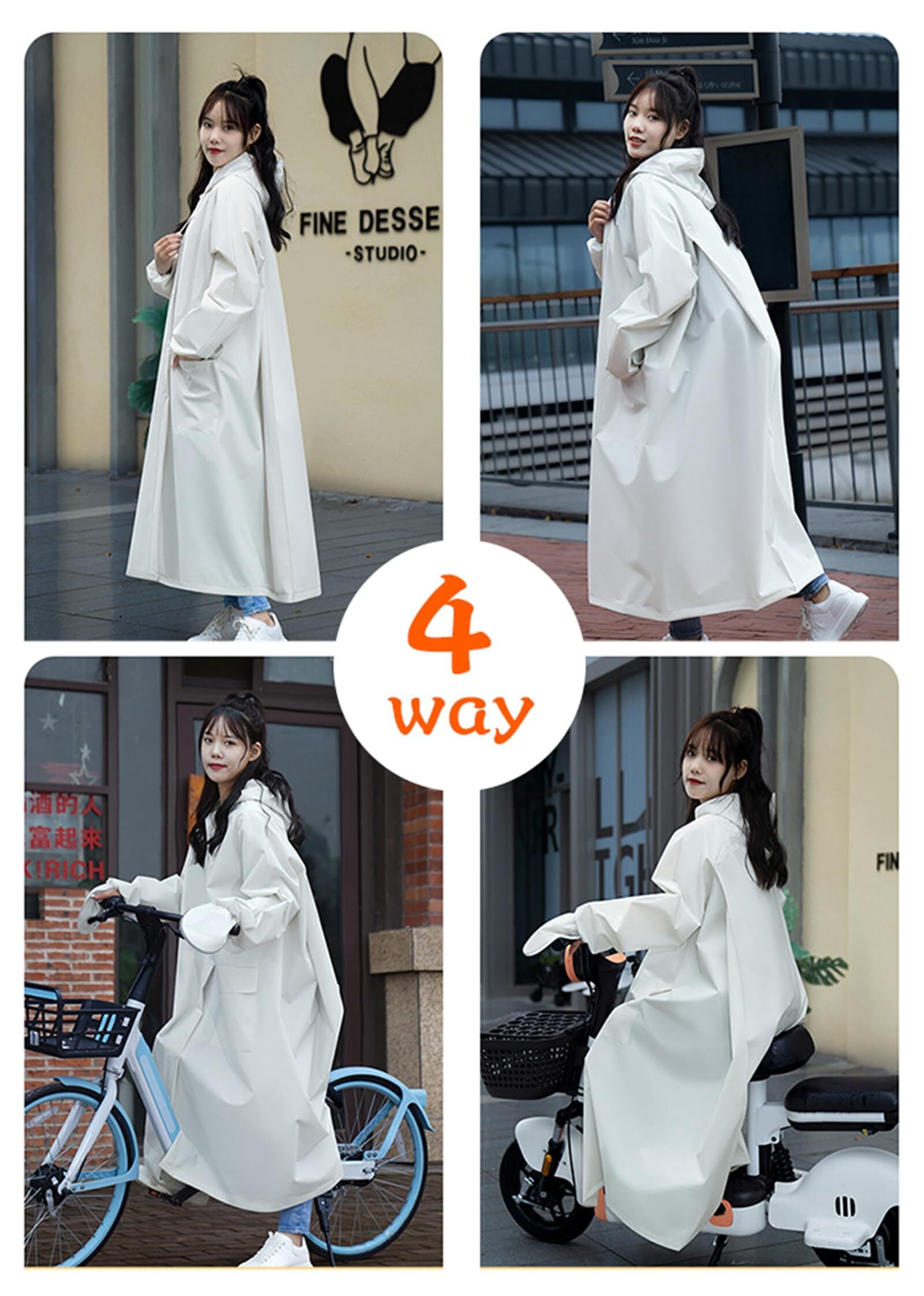 【レインコート レディース ロング】自転車、リュックに対応可能な男女兼用のレインコート。膝下までカバーするロング丈、体がしっかり覆われ、レインブーツを履けば足元まで濡れない、全身を雨から守ることができます。