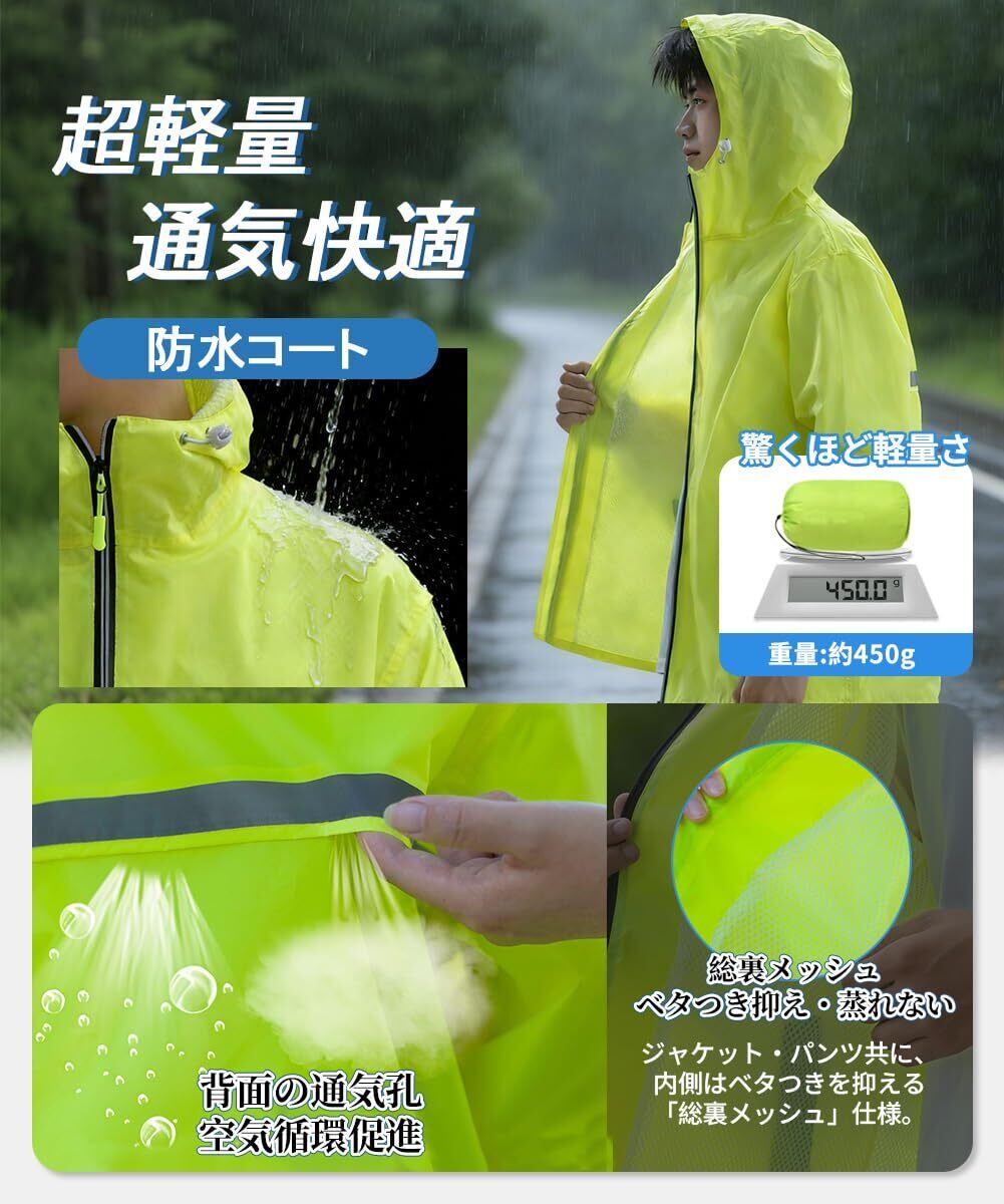 【人気商品】[AEZE] レインウェア 上下 セット メンズ 梅雨対策 超軽量 防水 透湿 通気メッシュ レディース 反射プリント 自転車 バイク 登山 レインスーツ通勤 通学 雨合羽 撥水 台風対策 雨具 カッパ 男女兼用