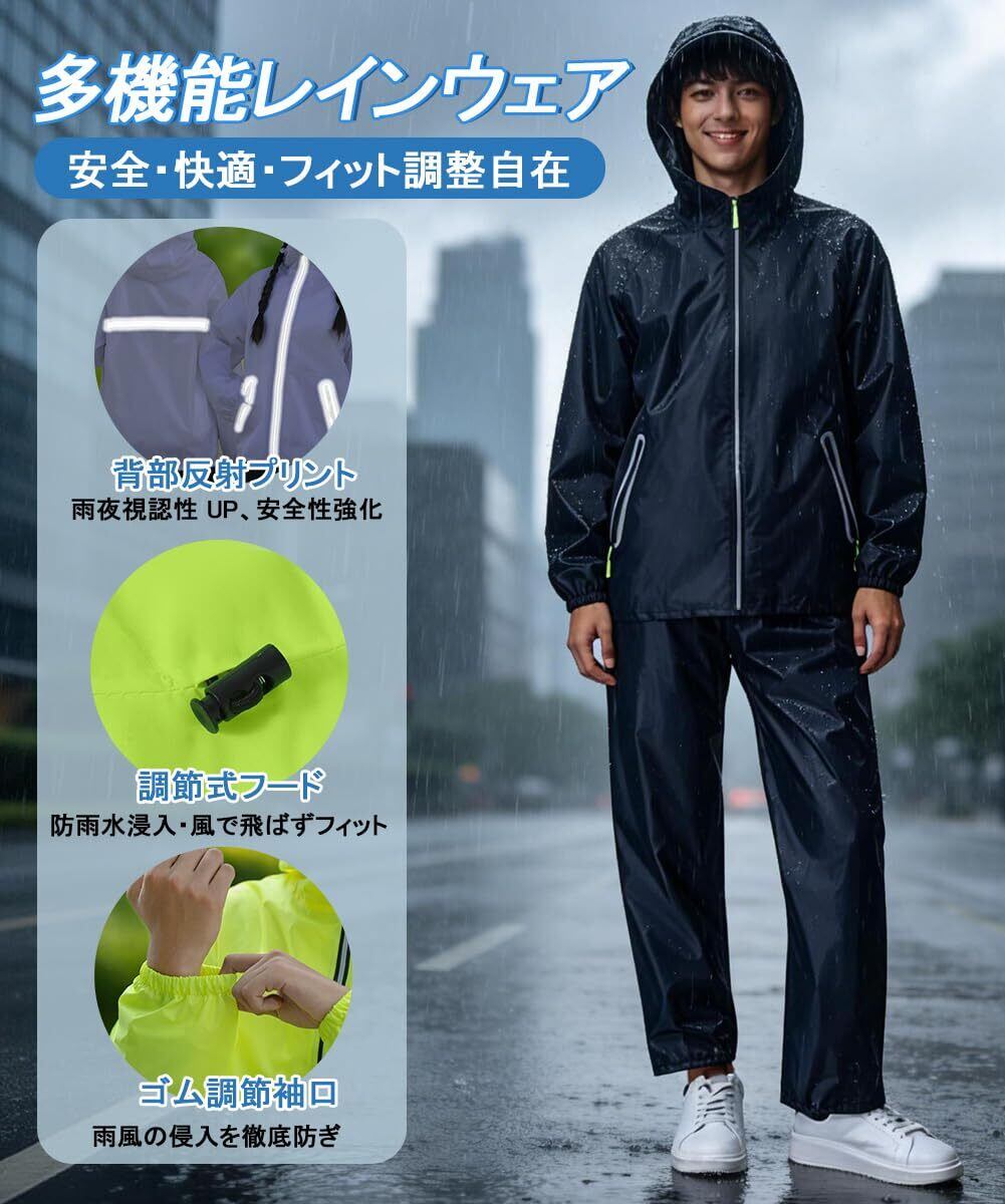 [AEZE] レインウェア 上下 セット メンズ 梅雨対策 超軽量 防水 透湿 通気メッシュ レディース 反射プリント 自転車 バイク 登山 レインスーツ通勤 通学 雨合羽 撥水 台風対策 雨具 カッパ 男女兼用