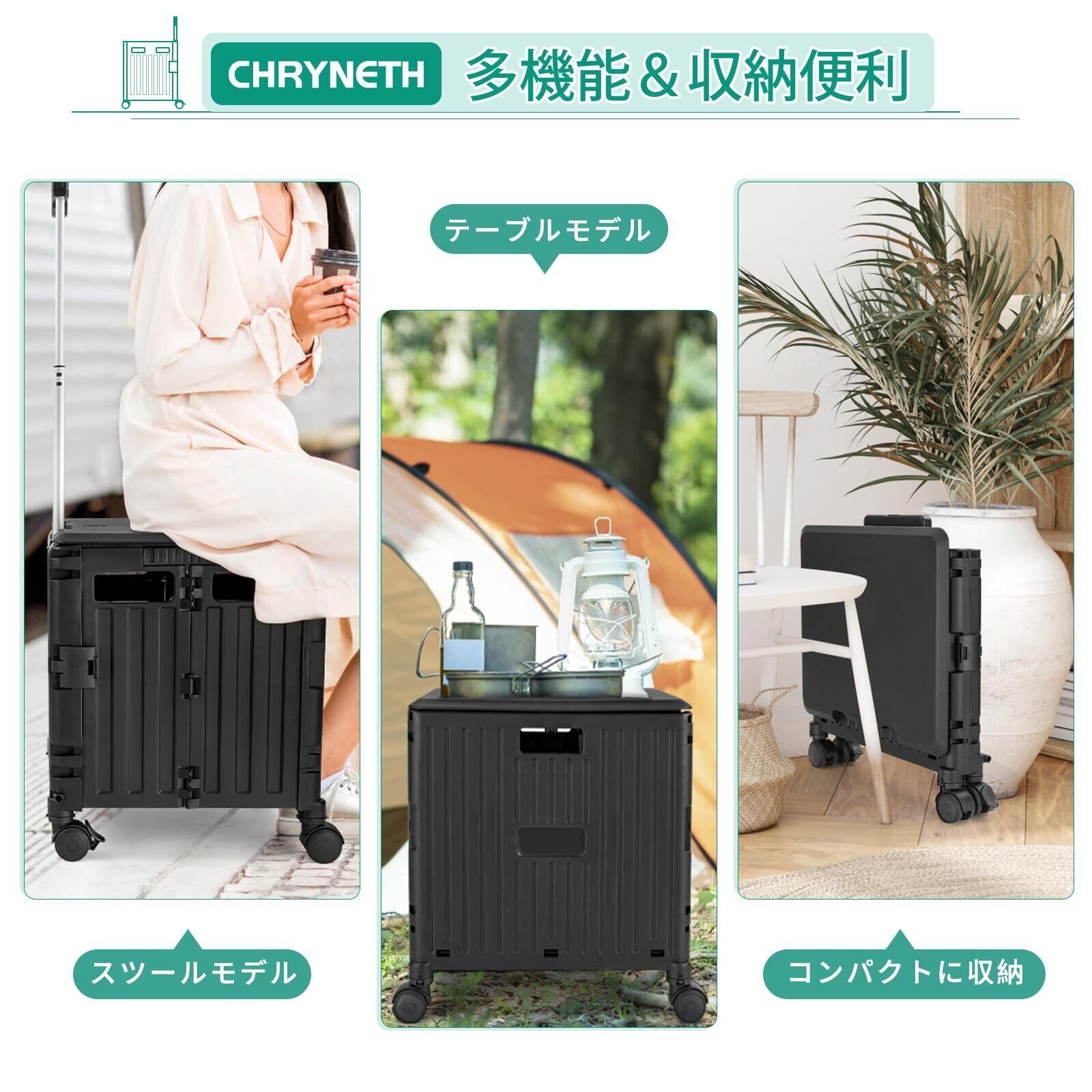 【新着商品】折り畳み キャリーカート ハンドル角度調整可能 ショッピングカート 4輪自在 後輪ストッパー付き お釣り 運動会 アウトドア キャンプ用 ふた付き 荷物運び 大容量65L 耐荷重50KG