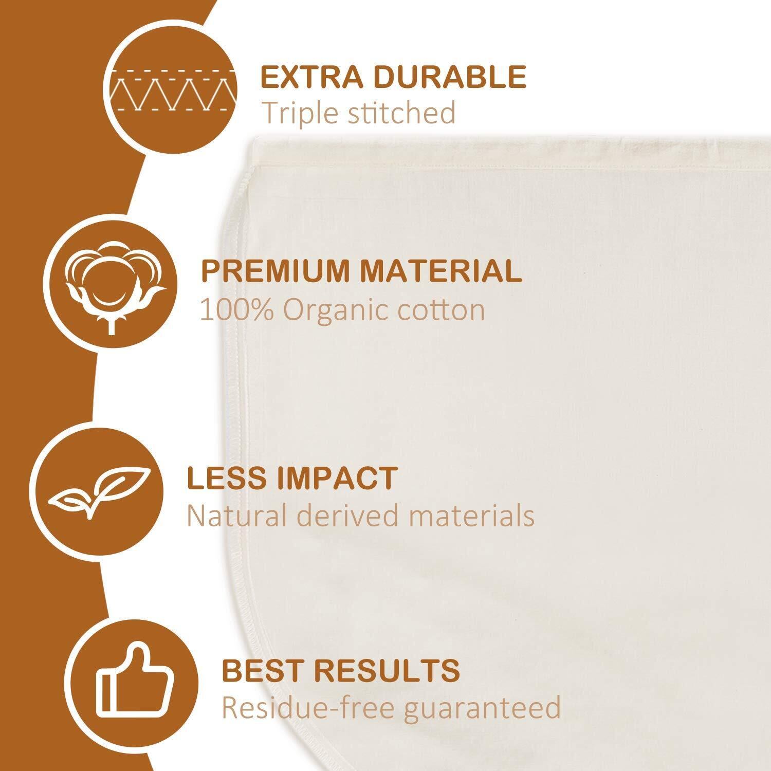 コットンステッチと丸みを帯びた底部で、当社のバッグは簡単に洗って再利用できます。 大きな丸いナイロン製の引き紐は、重力抽出やビーガンチーズ作りに最適です。