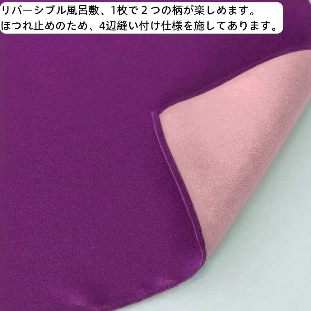 【新着商品】風呂敷 リバーシブル おしゃれ 大判 ふろしき 無地 90センチ ちりめん 両面染め 四方縫製 二四巾 お弁当包み ラッピング ギフト包み 瓶包み 着物お稽古バッグ 目隠し クロス エコバッグ (紫・ピンク, 90×90cm)