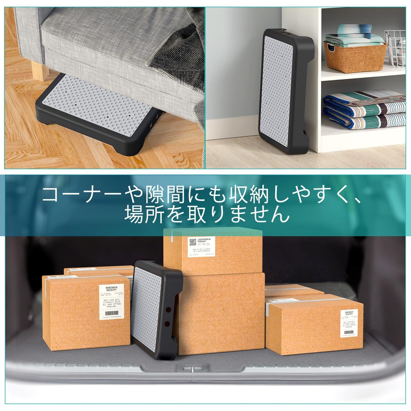 【車の乗り降り用】7.1~10.2cmという高さがちょうどよいので、乗降がスムーズになります。片手で持てるほど軽いので、自動車に積むことができます。雨の日もゴムによりちゃんとグリップするので安心して使えます。