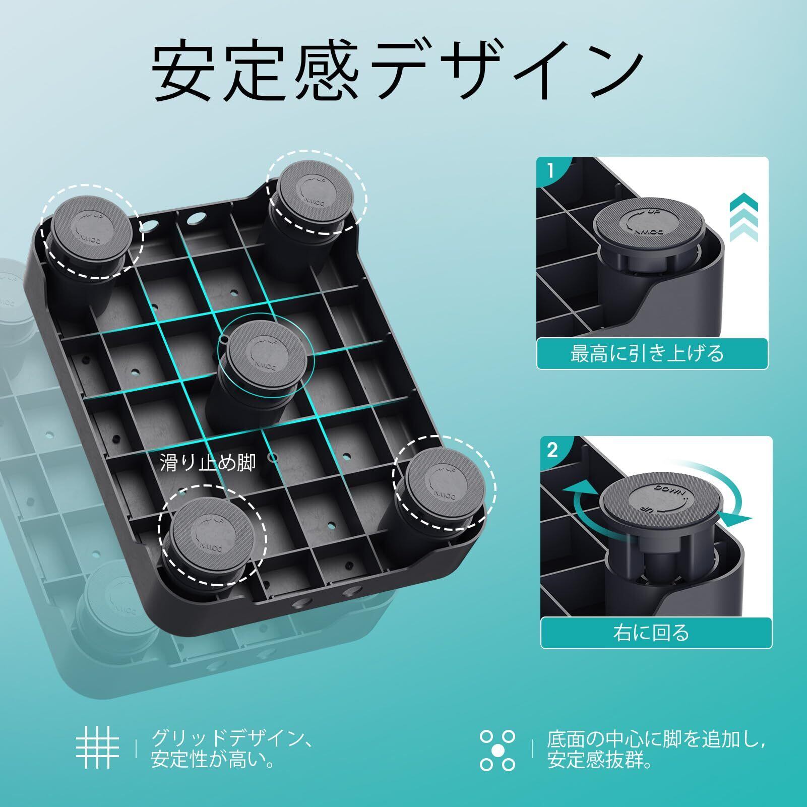 【滑り止め・安定感】 玄関踏み台板の表面に滑り止めマットがあり、ずれにくく、踏み心地が良い。底面には合計5つの滑り止めを採用され、安定感抜群。 最大耐荷重は約250kgです。