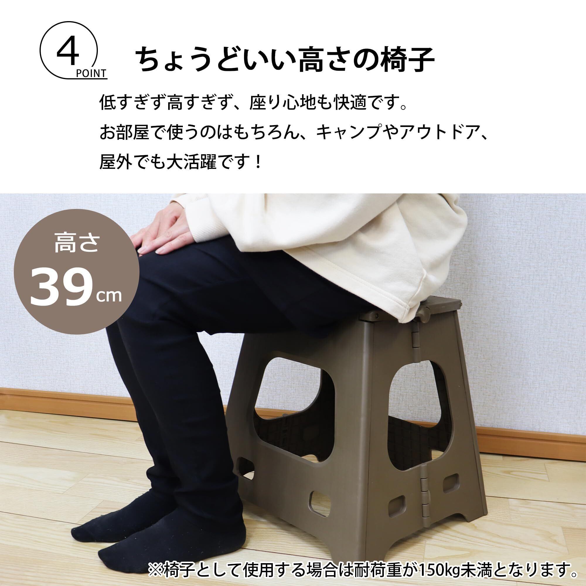 icokka 踏み台 折りたたみ 耐荷重200㎏ 高さ39㎝ スマートスツール (02.ブラウン)
