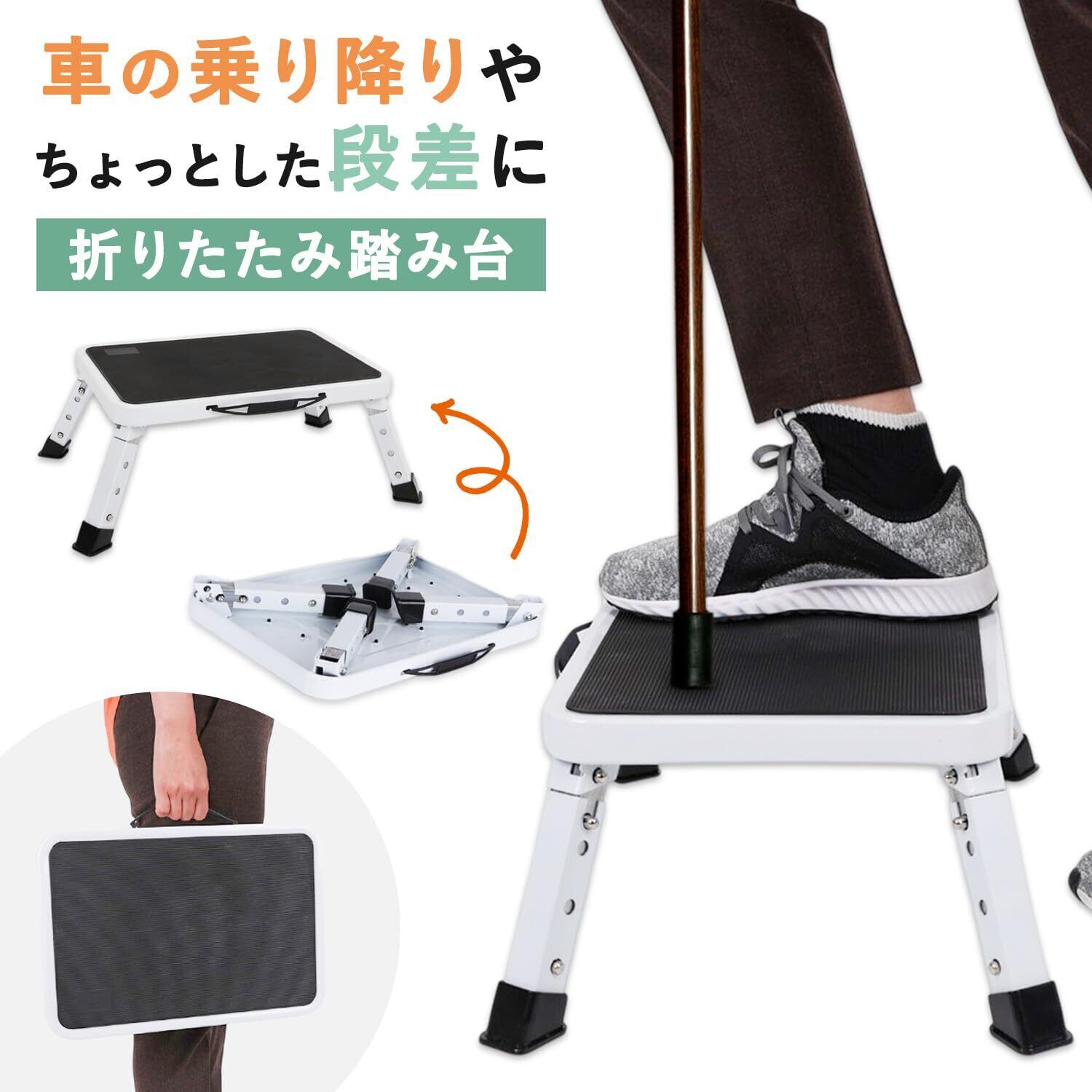 [MRG] [介護の専門家監修] 折りたたみ 踏み台 耐荷重150kg 車 乗り降り 高齢者 高さ3段階調整 軽量 コンパクト 滑り止め付き ステップ台 スツール (ホワイト)