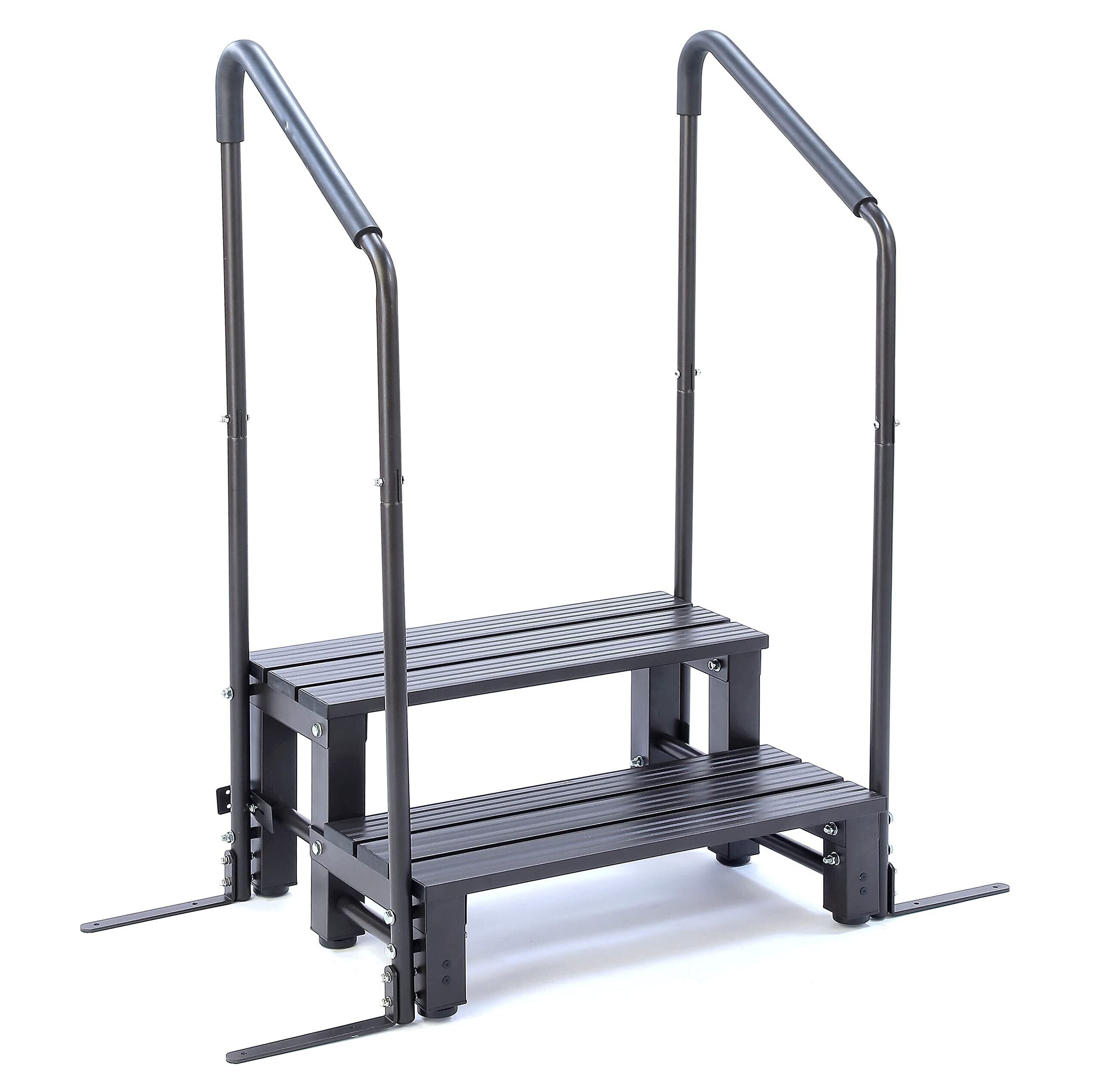 ●気になるちょっとした怖い段差を解消してくれるステップ台に手すりがついてさらに便利に! ●手すりが付いているから昇り降りする時のちょっとした不安を解消してくれます。●足元にはアジャスターが付いているので土の上などの地面の高さにバラつきがあるところでも設置しやすい。●アルミ製だから軽量で汚れにも強いから、お好きな場所に設置する時に楽々●片手すりのタイプと両手すりのタイプがあるからお好きな方からお選びいただけます。