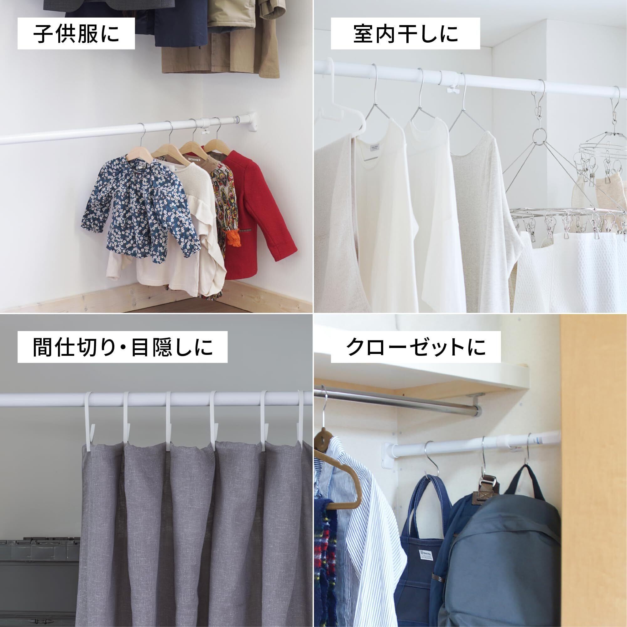 耐荷重最大45kgで部屋干しやクローゼットの収納追加など幅広い用途で利用可能。