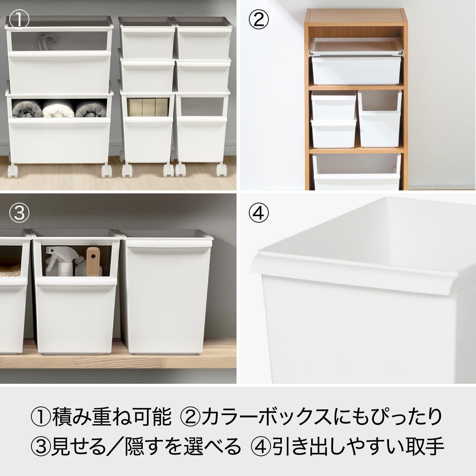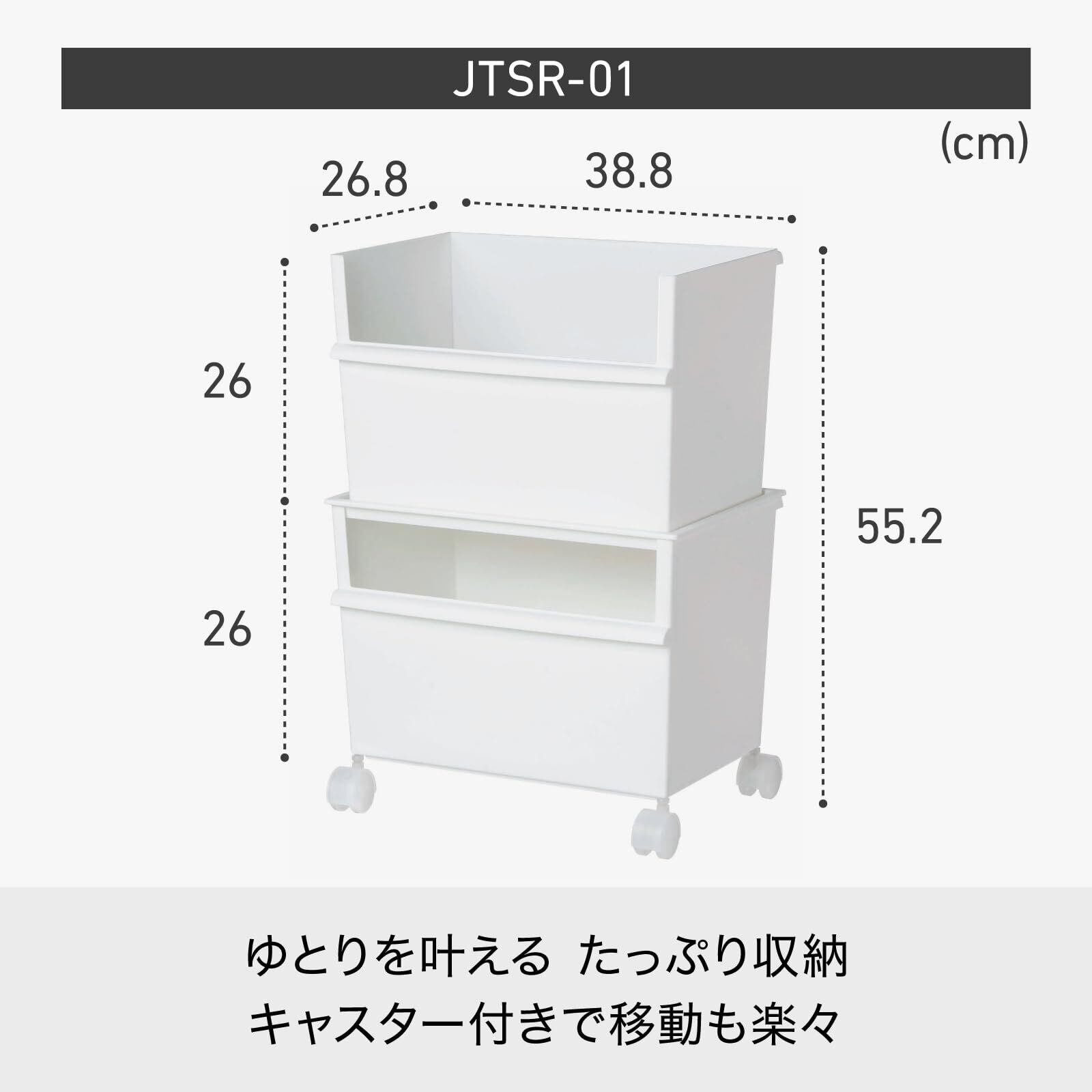 ライクイット(like-it) 収納ボックス 小物収納 レトルト食品 収納 ケース コンテナー ワイド 深型×2セット (キャスター付) ホワイト 約幅38.8x奥26.8x高55.2cm (セット時) JTSRー01 再生材51%以上使用 収納ボックス 学用品収納 ランドセルワゴン