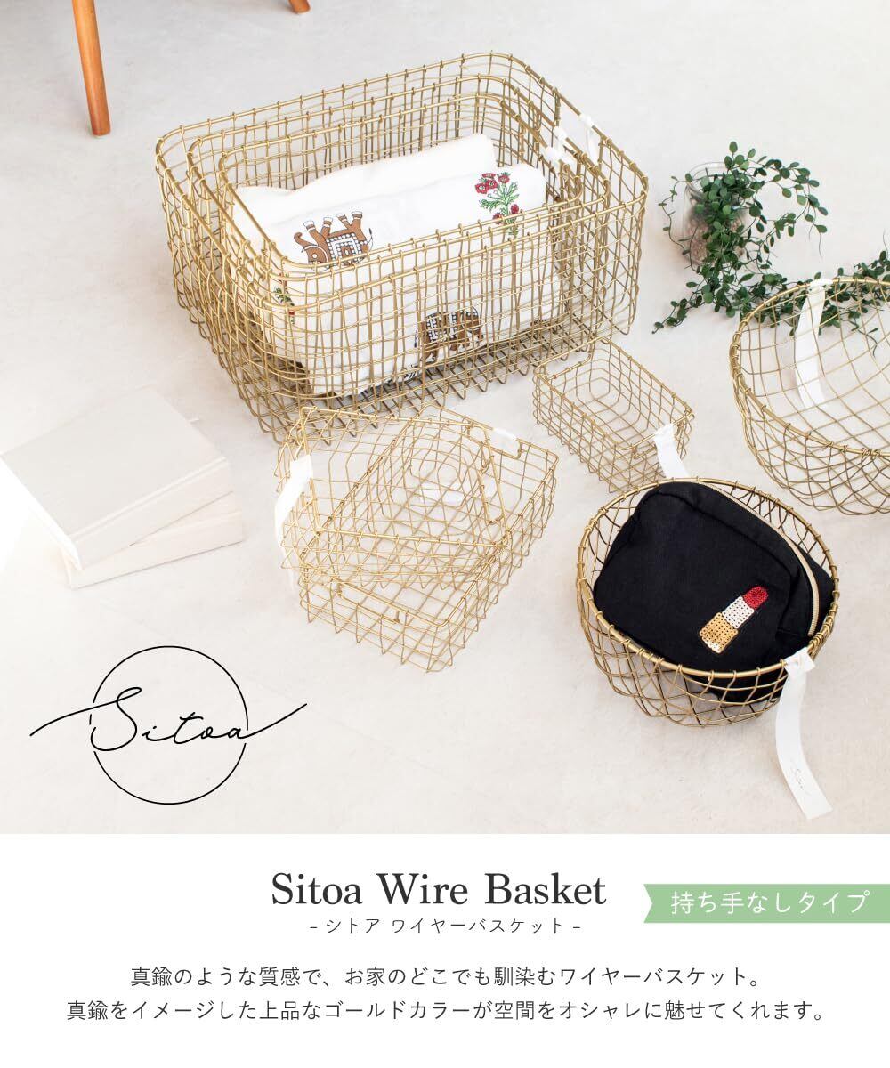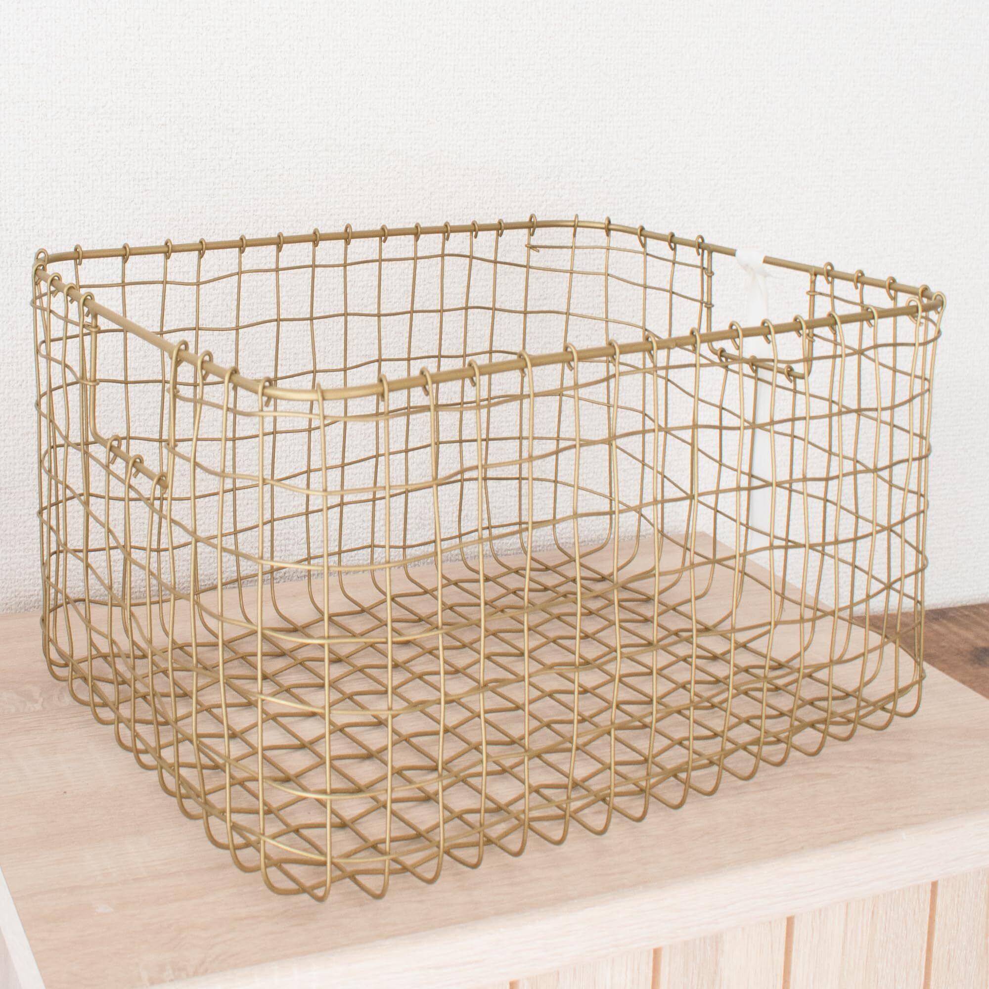 【暮らしになじむオシャレなバスケット】ワイヤーバスケット かご 収納 真鍮風 長方形 角形 幅43cm 大サイズ アンティーク シトア