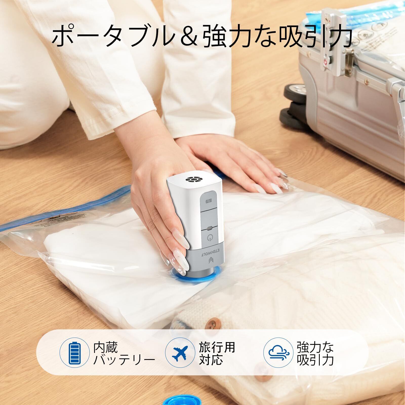 【数量限定】ETENWOLF 真空 衣類圧縮袋 旅行 布団圧縮袋 20 枚セット 電動コードレスポンプ付き (100×70cm、80×60cm、70×50cm、60×40cm 各5枚) 布団 毛布 寝具 洋服収納用 高密封性 再利用可能 圧縮パック 収納 引越し 衣替え 出張用