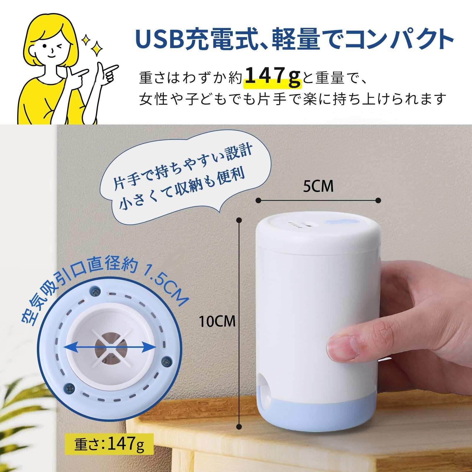 【電動ポンプ単品】 USB充電式電動ポンプ 布団圧縮機吸引機 掃除機不要 圧縮袋専用電動吸引機 コードレス コンパクト 軽量 手のひらサイズ 充電式 引気圧4000Pa