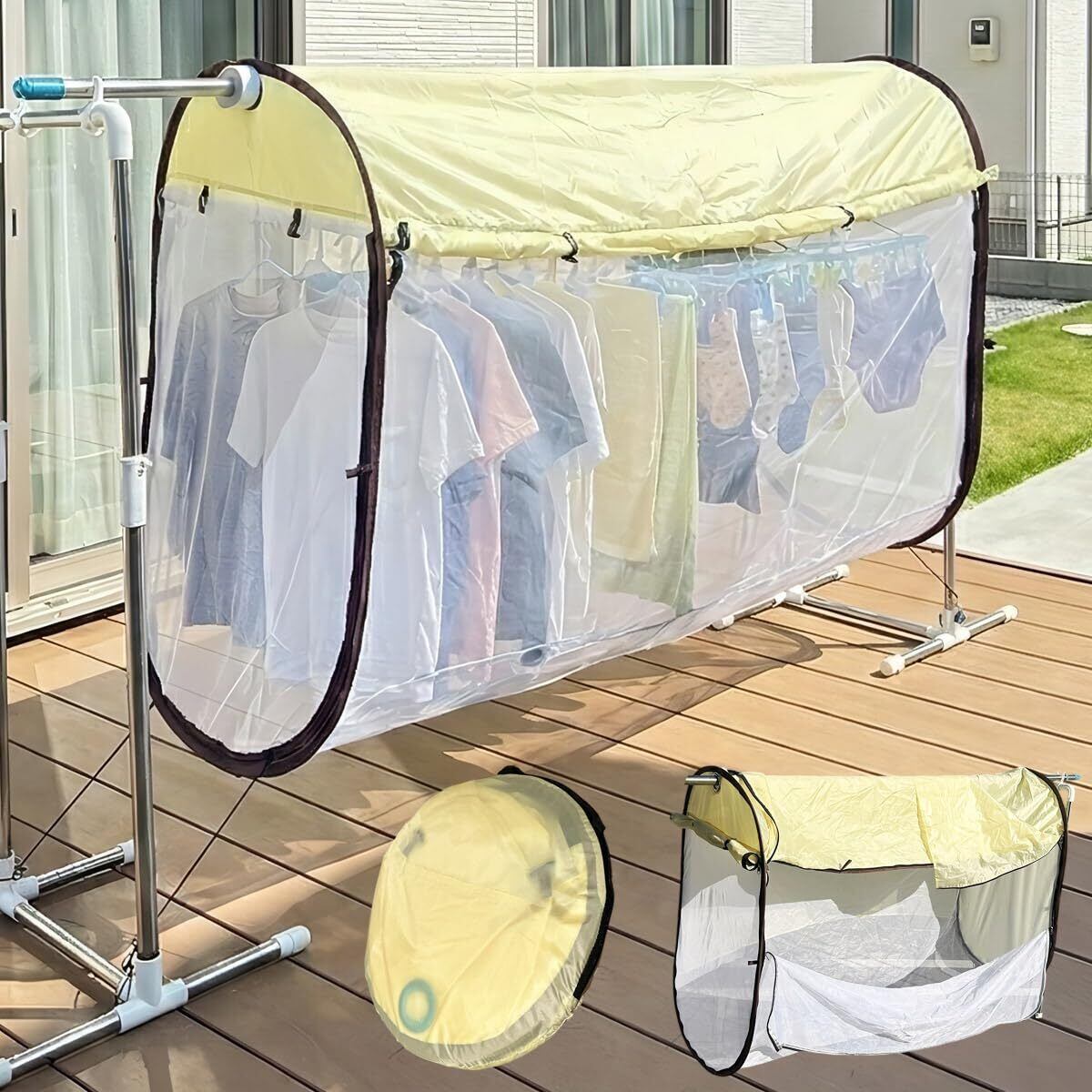 洗濯物カバー 花粉 対策 防止 360°カバー ShareFunn ナナガード 洗濯物 目隠し ベランダ ネット 虫除け 雨よけ 物干し 屋外 虫よけネット あめよけシート 防虫 防水 紫外線カット カメムシ 虫 外 黄砂 鳥害 梅雨 PM2.5 対策 通気性 雨よけカバー 洗濯日和 コンパクト 折り畳み