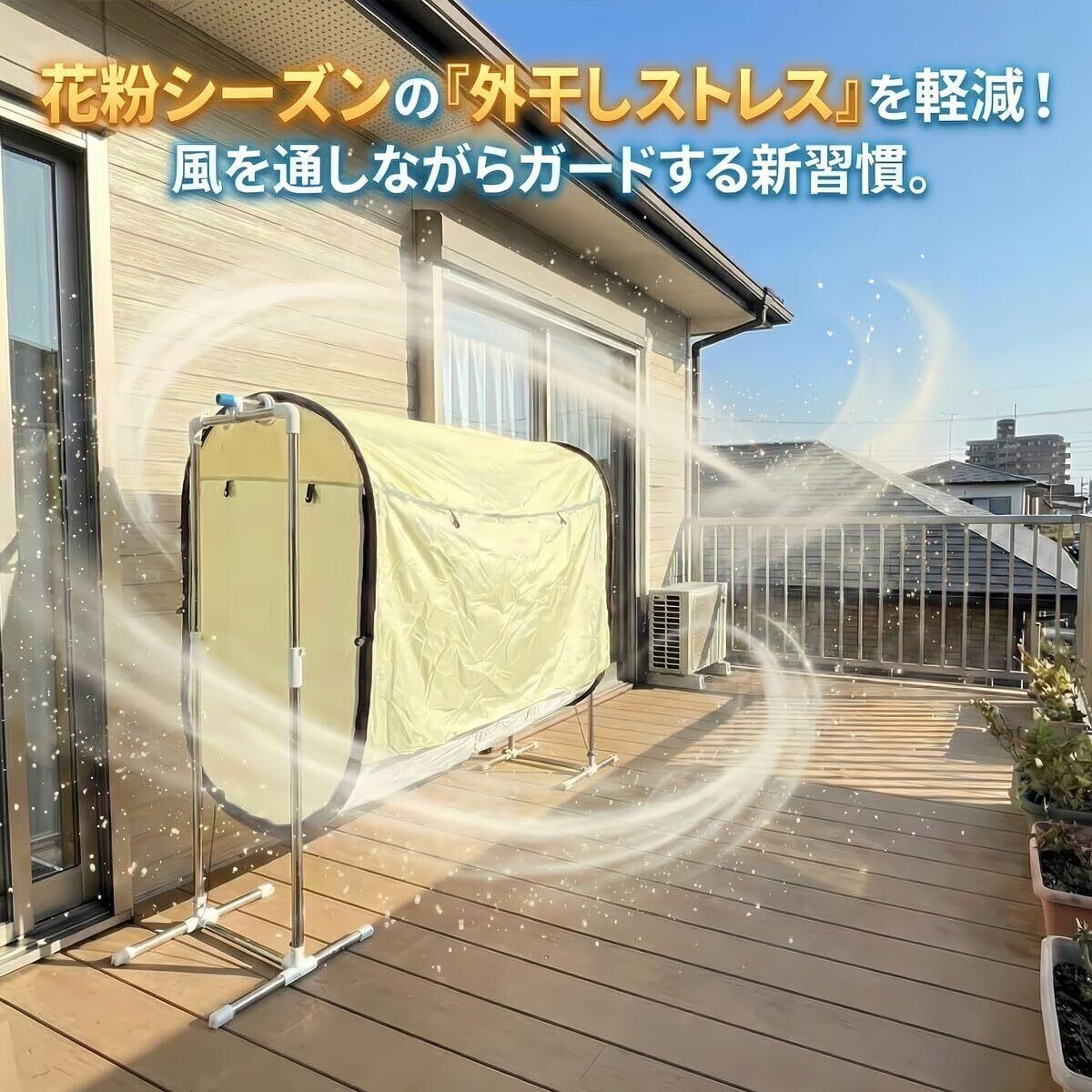【対策できるもの】虫のとりつき、鳥の糞害、花粉・黄砂・火山灰、紫外線、雨、風による飛散、目隠し 【優れた通気性】通気性に優れるため、フルガード中でも湿気を排出し、洗濯物を乾燥させます。