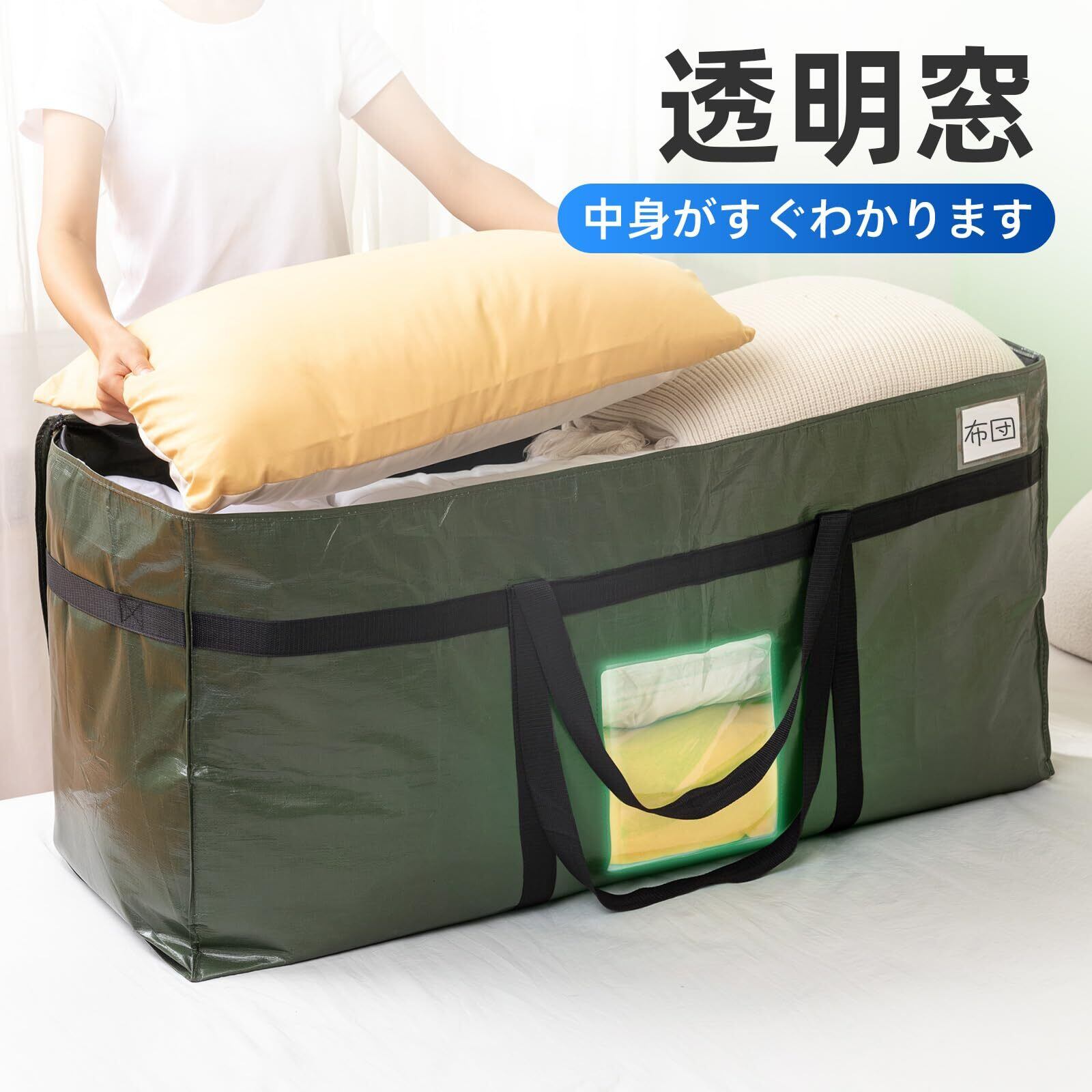 TAILI 大きいバッグ 収納ケース 特大引越し 1個パック 大容量 透明窓 防塵防水 折りたたみ式 キャンプ 旅行 収納用 耐荷重 グリーン