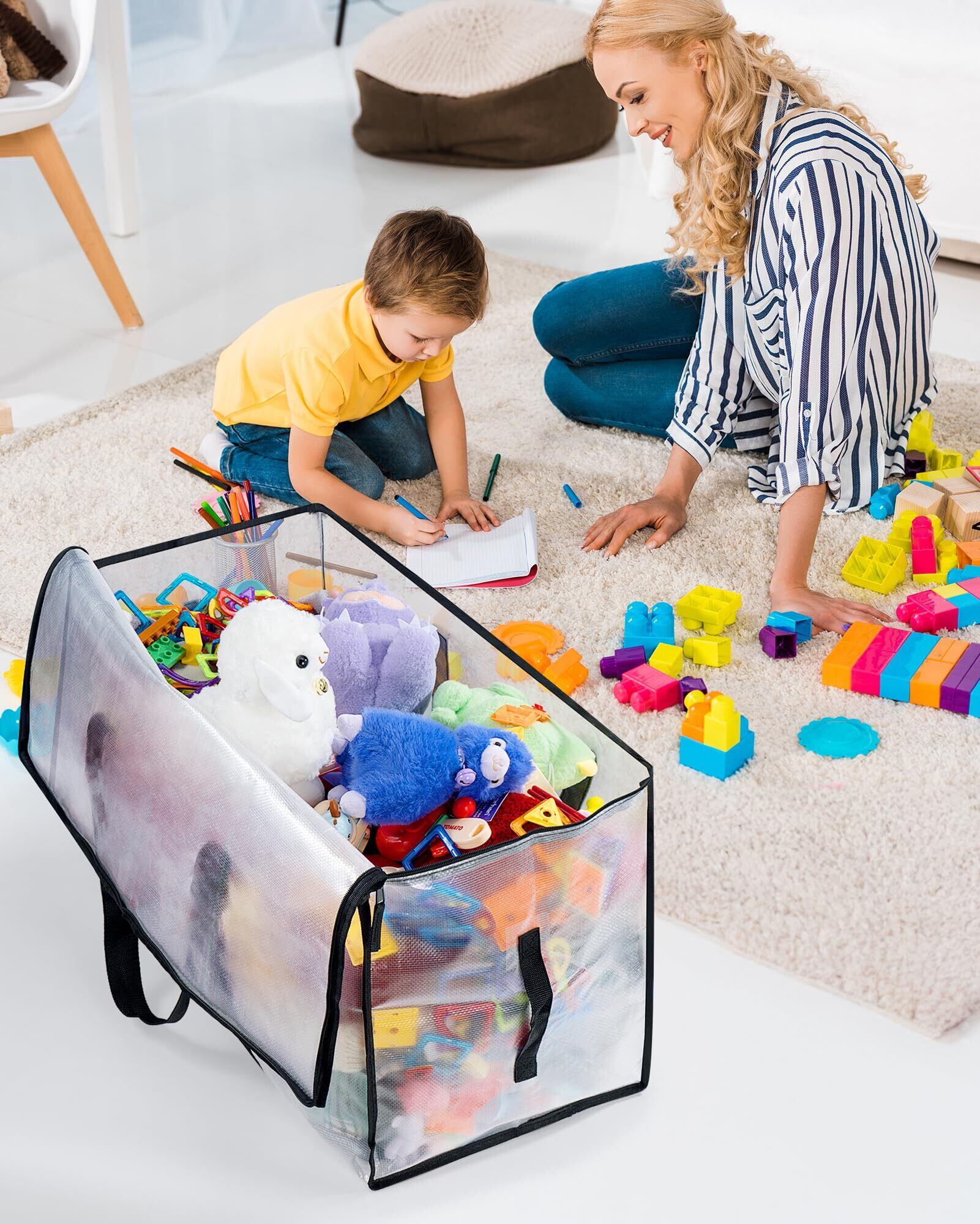 大きい引越しバッグ 布団収納袋 大容量91リットル 収納ケース 防塵防水 持ち手付き 折りたたみ式 収納バッグ 衣替え 旅行 引っ越し対応 (透明, 2枚)
