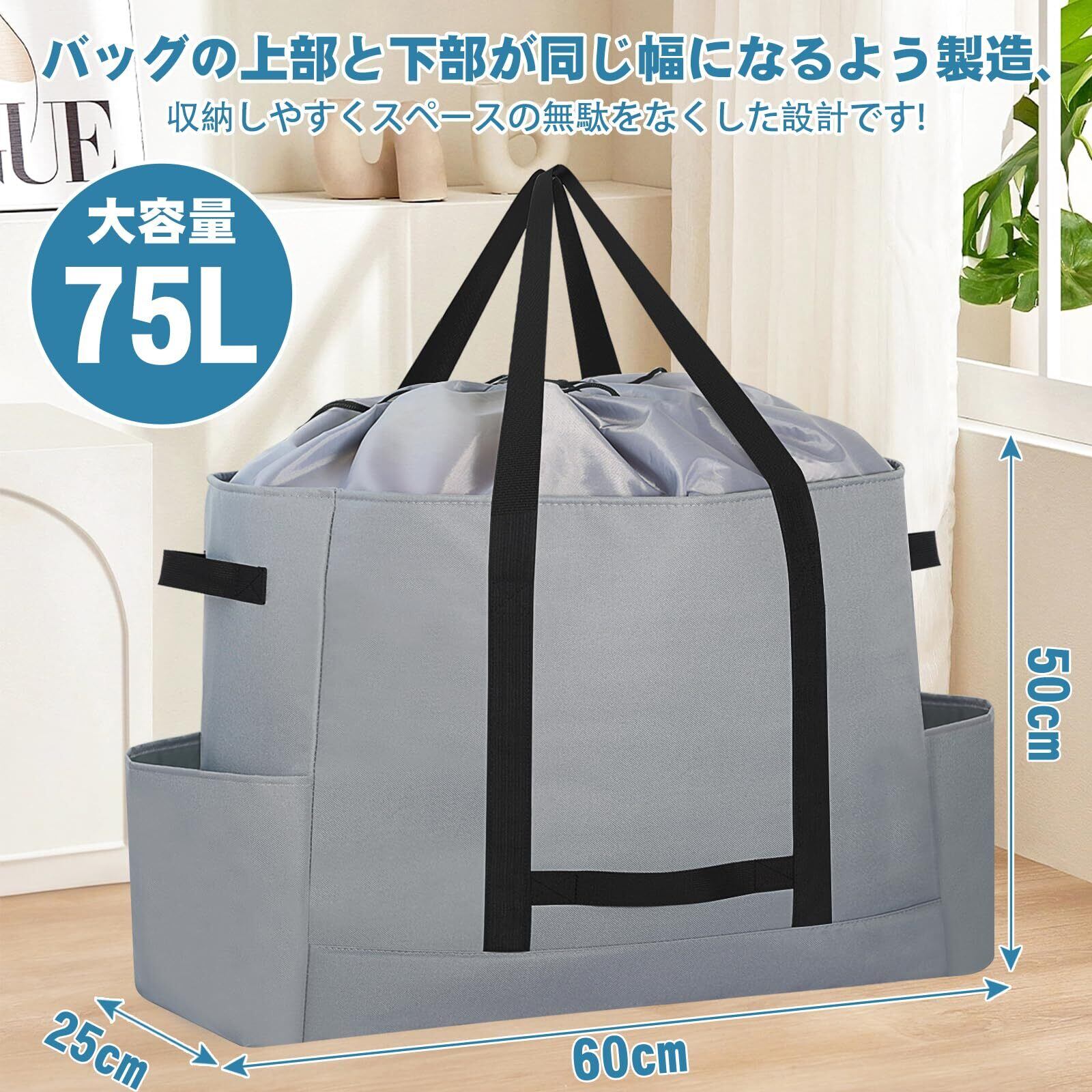 『折り畳み式・とても便利』折り畳み式のバッグが、使わないときは折りたたんでコンパクトに収納可能です。家にいる間、布団や衣類を入れて押入れに置いておくのも、旅行時のサブバッグでお持ちの際も、車に積んでおいてもかさ張りません。場所を取らずに保管が出来るのも魅力的です。