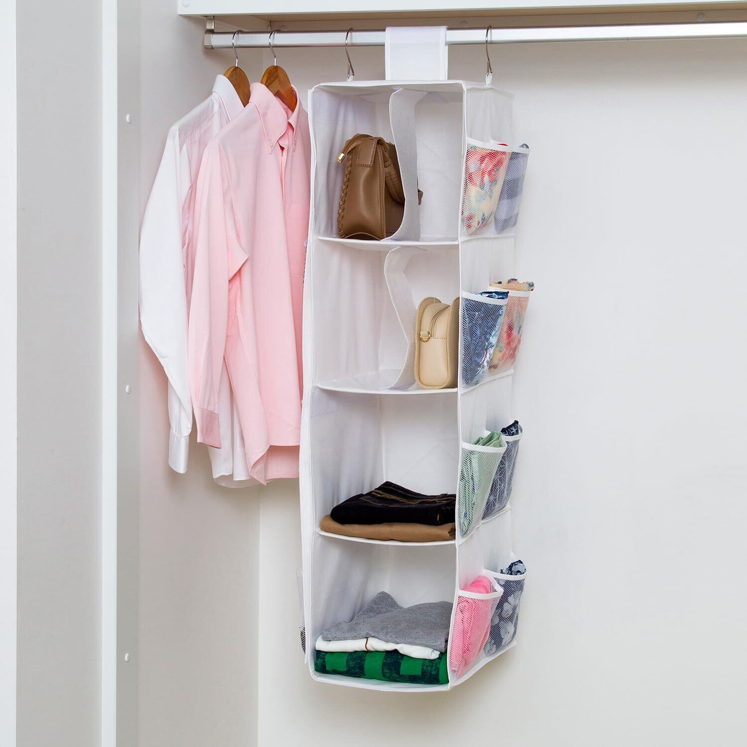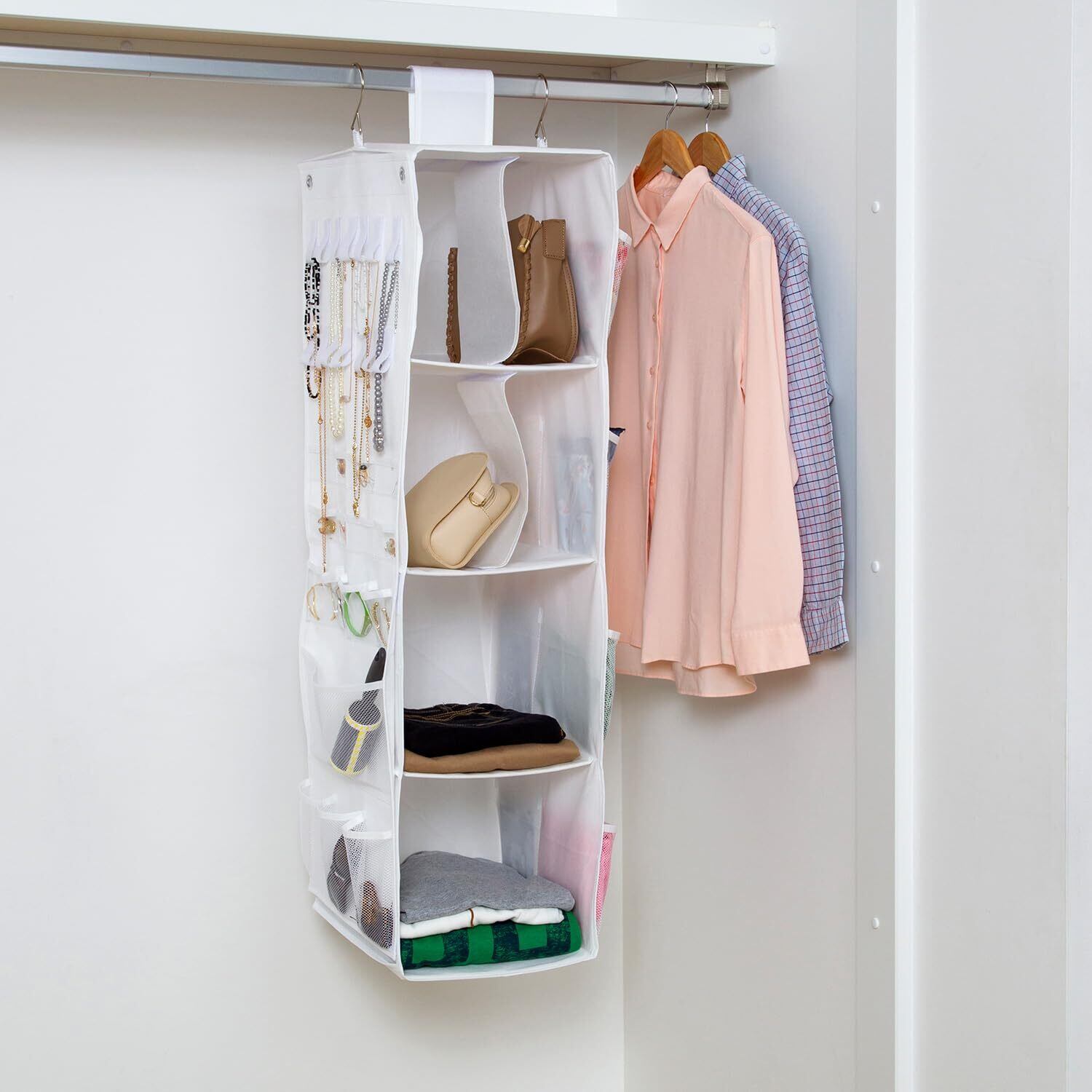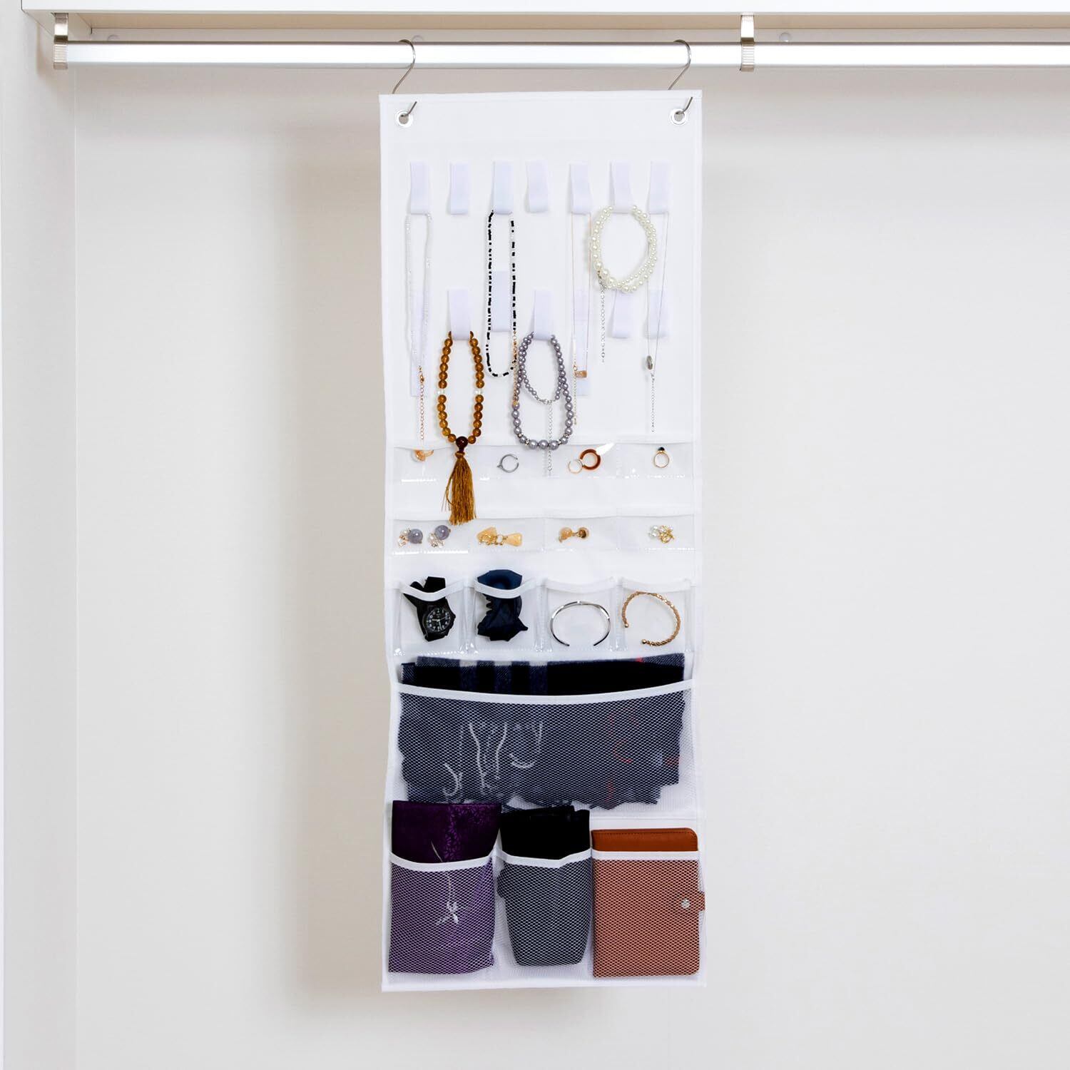 アストロ 吊り下げ収納 4段 ホワイト クローゼット マルチ収納ラック 両サイドにも収納できる ポケット付き 単体でも使える吊り下げ小物収納 衣類 バッグ 帽子 アクセサリー保管 大容量 まとめて収納 890-01
