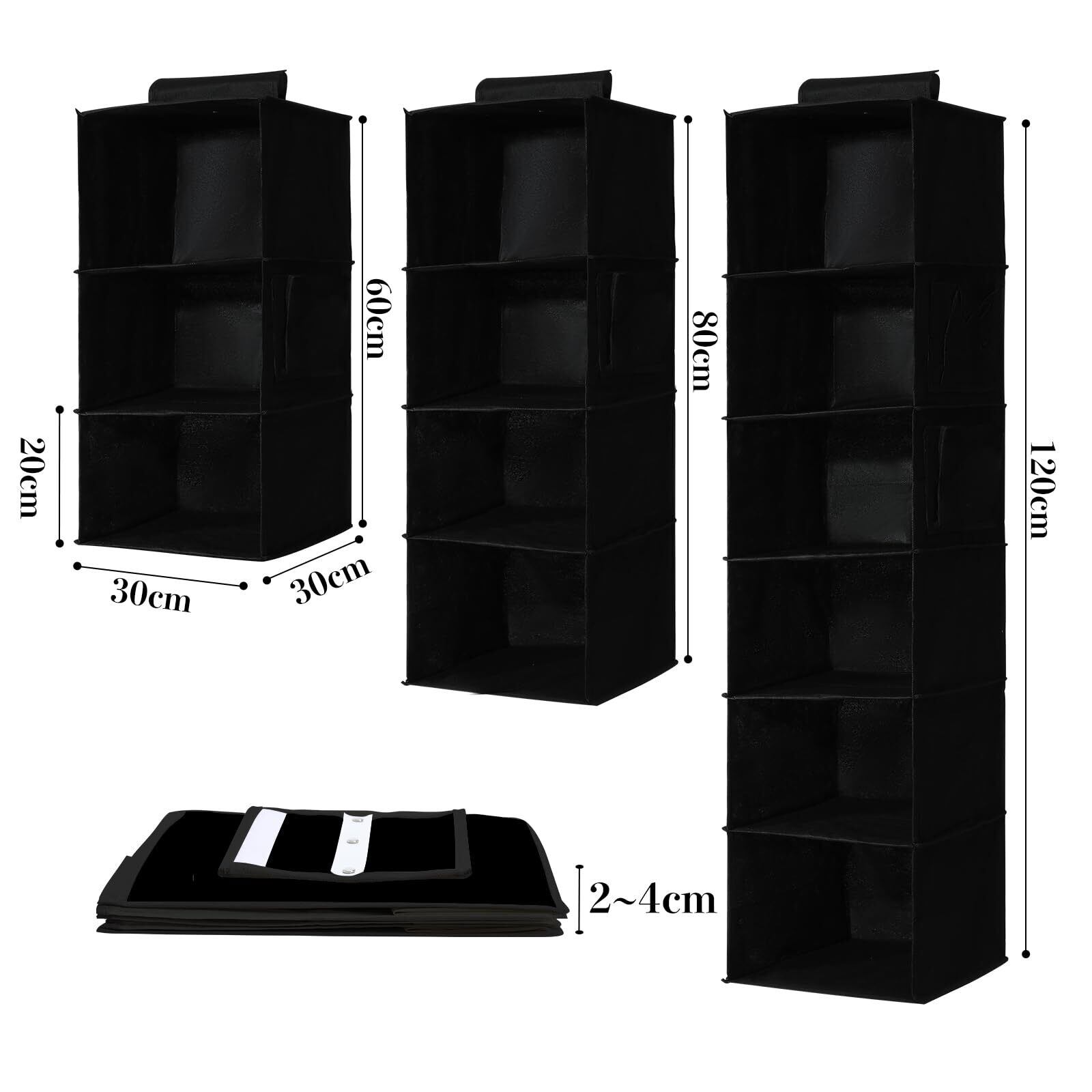 【数量限定】吊り下げ収納 6段 衣類ラック クローゼット 収納吊り下げ 【最新竹製天然版】大容量 帽子/鞄 収納ラック 取付簡単 折り畳み式 旅行/出張 30x30x120cm(ブラック、6段)