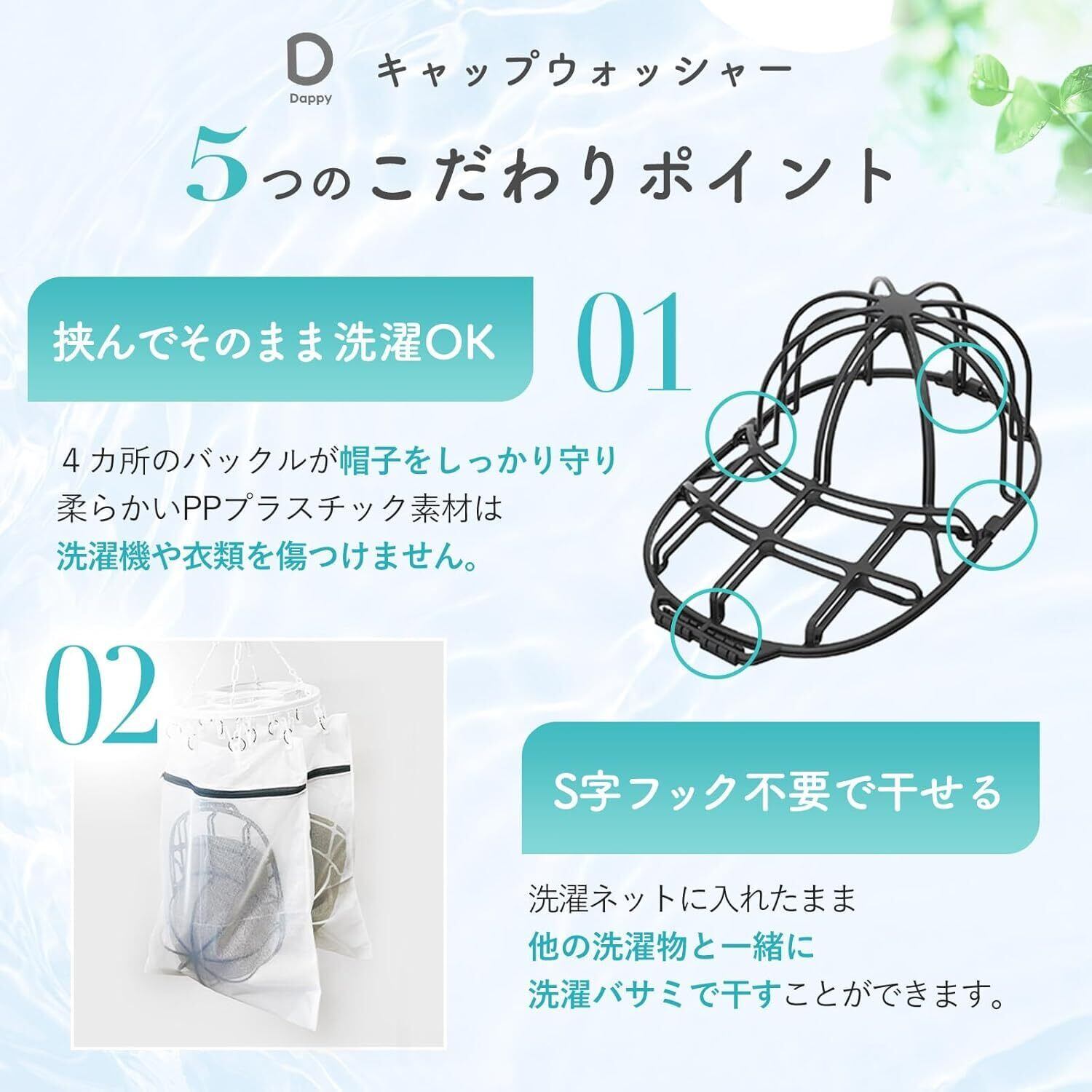 【日経MJ・保育専門誌に掲載】【現役クリーニング師が推薦】便利性が評価され、日経MJをはじめとするメディアに多数掲載!Dappyのキャップウォッシャーはより楽に清潔な帽子を日々使用して頂くために日本企業(株式会社グローバルアジアパートナーズ)が商品開発を行っています。洗濯機、衣類を傷つけない柔軟性を持ち、また耐久性をするためにPPプラスティックを使用しています。