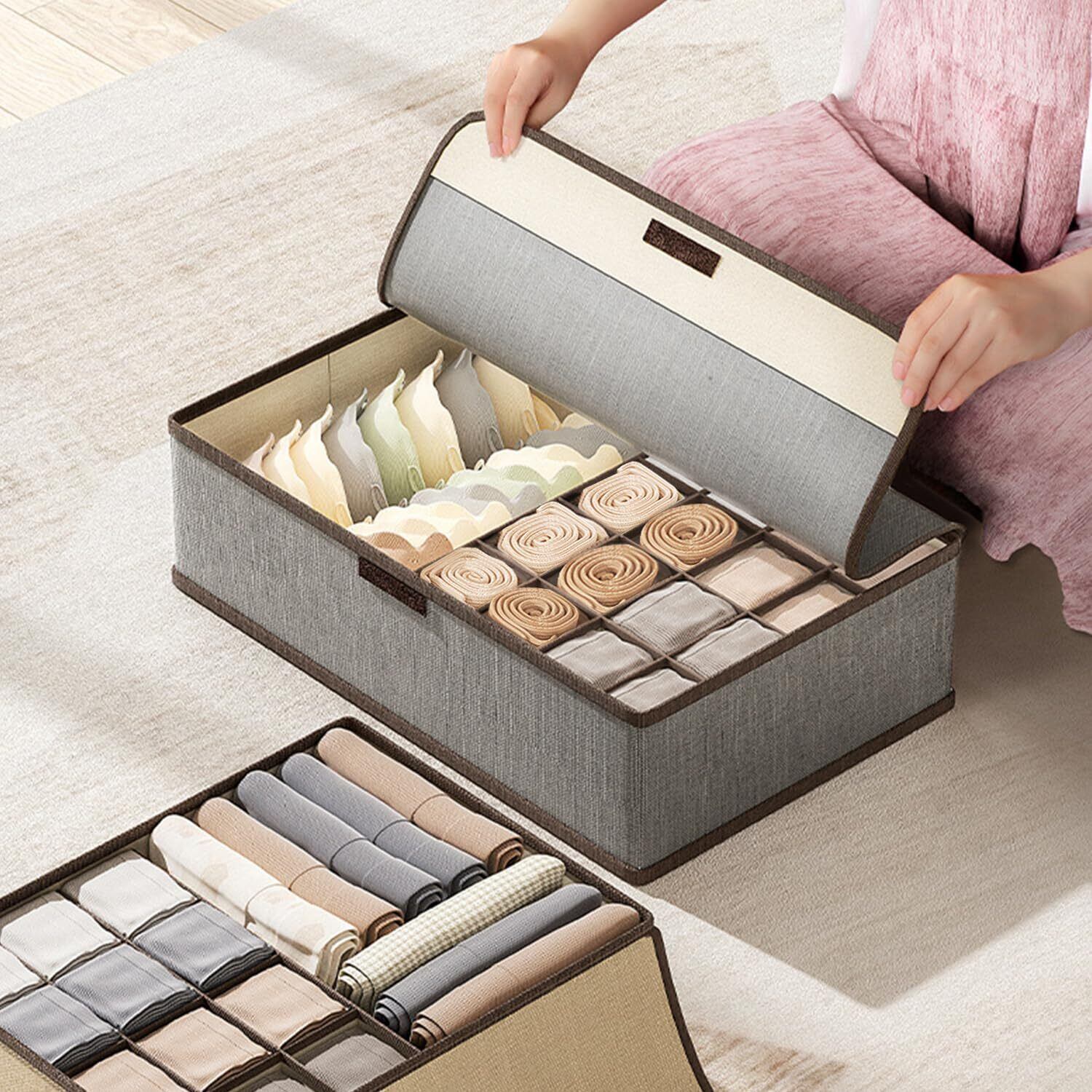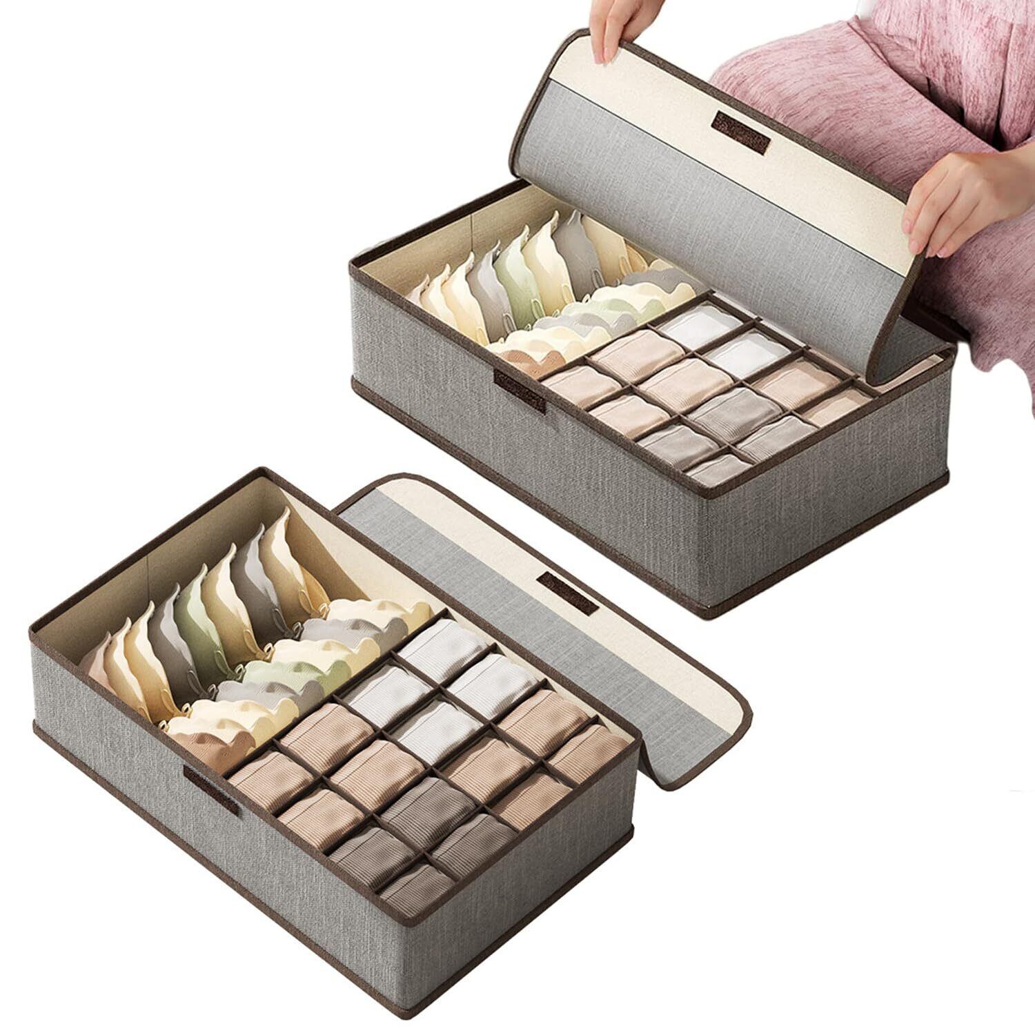 【新春セール】ohbien 2個セット 下着収納ボックス ブラジャー収納 折り畳み衣類衣装用引き出し仕切り収納 衣装ケース 蓋つき クロゼット 型崩れ防止 防虫 防塵 防湿 通気 ブラ・下着・靴下17マス 省スペース 3in1 下着 衣類収納ボックス 蓋付き