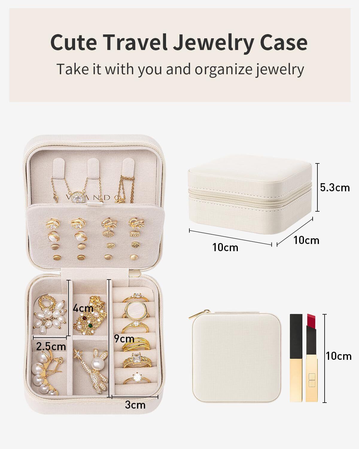 Vlando 正方形アクセサリーケース 持ち運び 小物入れ ジュエリーケース 持ち運び イヤリング 収納 誕生日プレゼント ホワイトデー-ホワイト
