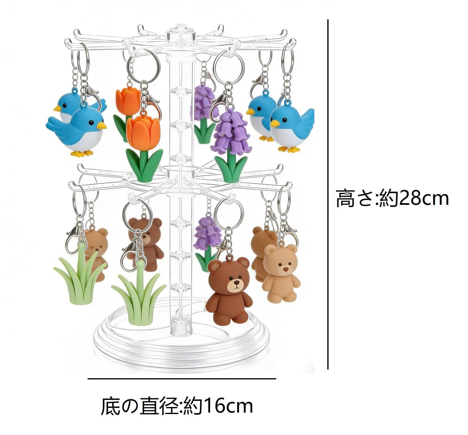製品仕様:サイズ:高さ:約28cm、底の直径:約16cm、素材:PS、キーホルダーのディスプレイスタンドです。写真に飾り製品はは付属しません。(ご注意:自分で組み合わせる必要があります)