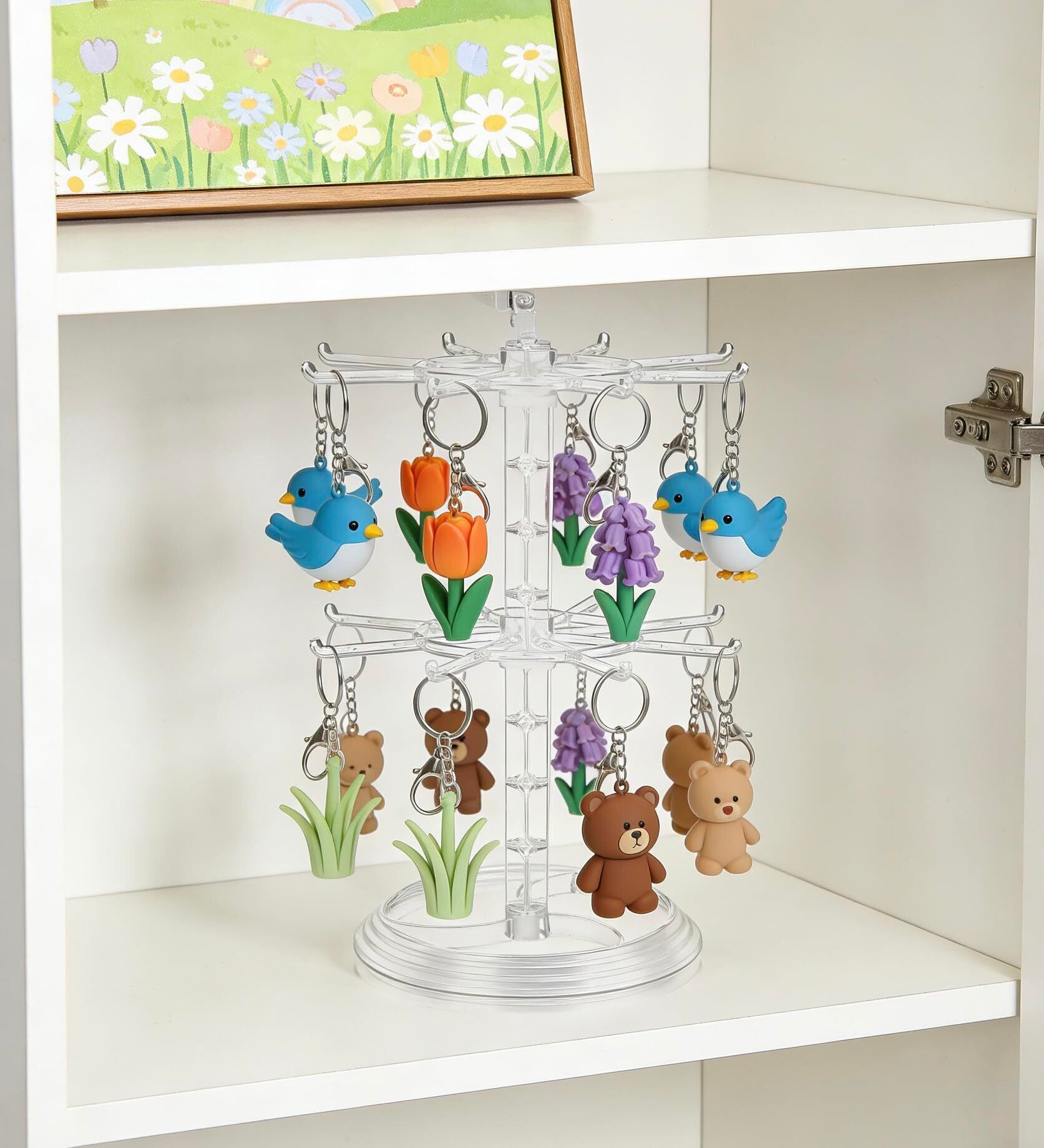 【特価商品】2段回転 ジュエリースタンド キーホルダー 大容量収納 ネックレスディスプレイ アクセサリーホルダー 見せる収納 チェーン ジュエリー イヤリング リング ブレスレット キーホルダー 小物収納 店舗 自宅 展示会