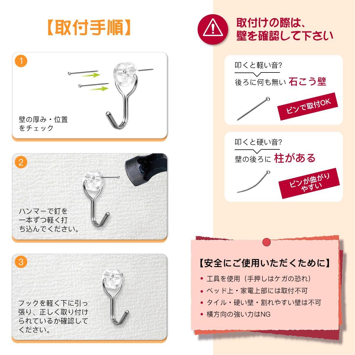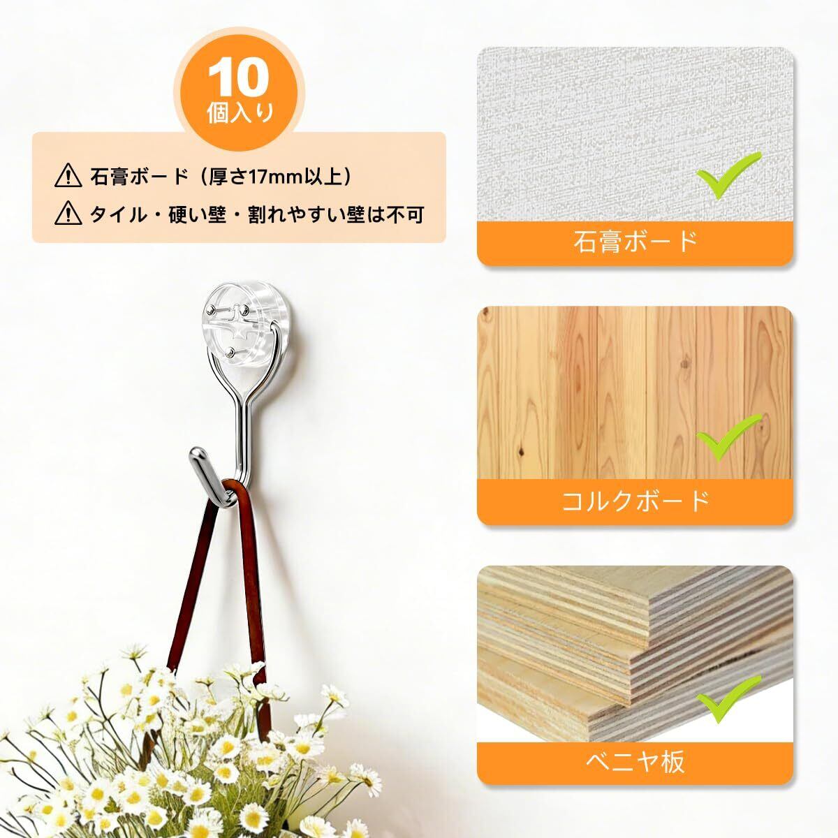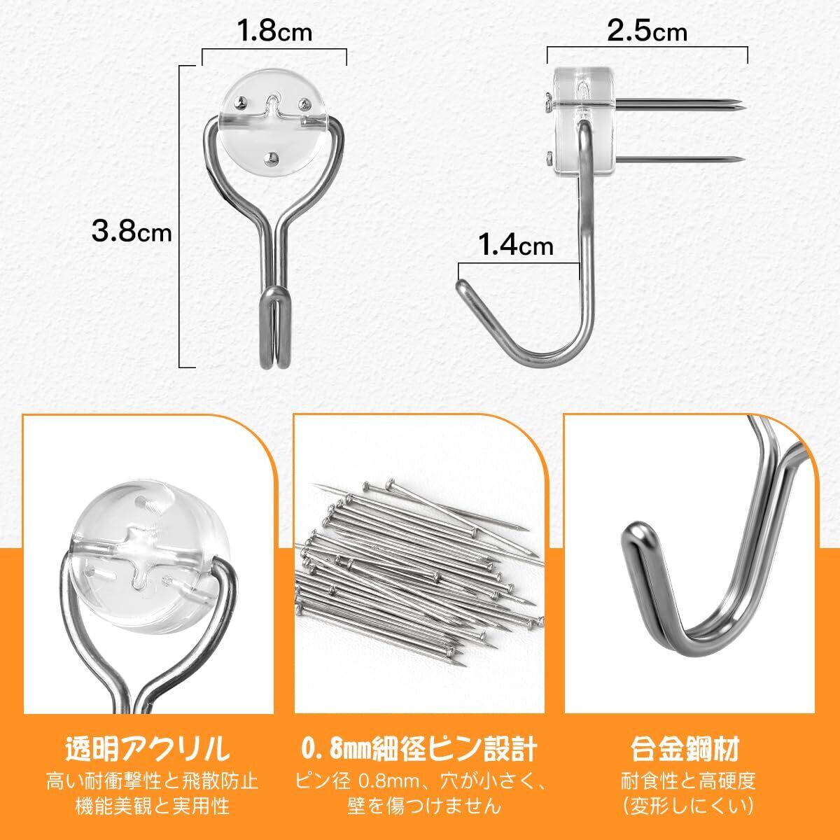 AIEVE 壁掛けフックスリーピンフック 10個入り 石膏ボード ベニヤ 木用フック 耐荷重5kg 壁掛けフックスリーピン クリア壁 透明アクリル 目立たない 小物掛け 傷つけない