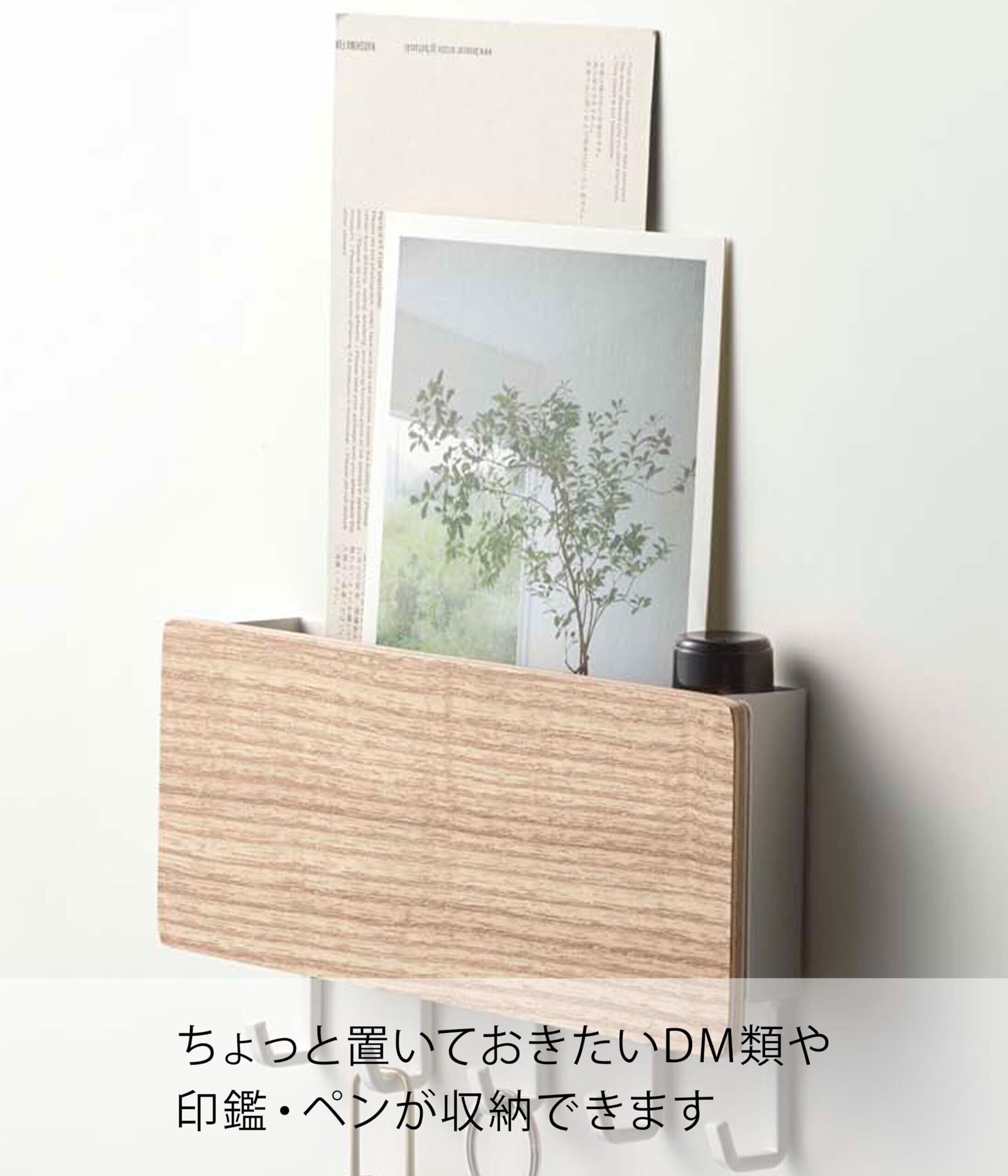 印鑑やDMが収納可能なマグネットキーフック。5つのフックで普段使う鍵類など一括収納! 便利なホルダー機能付きキーフックです。